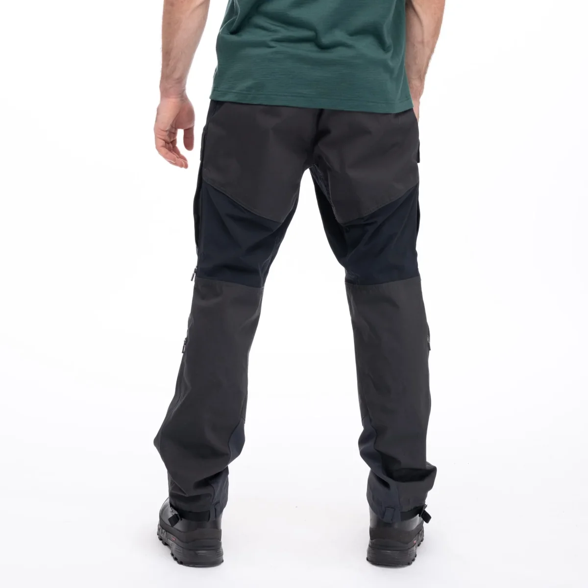 Robust canvasväv av återvunnen polyester och ekologisk bomull på utsatta ställen, och ett ventilerande material med 4-vägs stretch där maximal andningsförmåga är önskvärd. Återvunnen polyester från PET-flaskor sparar på fossila resurser och minskar både energiförbrukningen och utsläppen av växthusgaser. Detta minskar även plastavfallet. Ekologisk bomull minskar förbrukningen av kemikalier såsom bekämpningsmedel inom bomullsodlingen och använder inte genmodifierade växter. Alla material har PFAS-fri WR: Undviker skadliga kemikalier för en vattenavvisande yta. Produkten innehåller bluesign® APPROVED material och detaljer, vilket garanterar ansvarsfull hantering av kemikalier under produktionen.