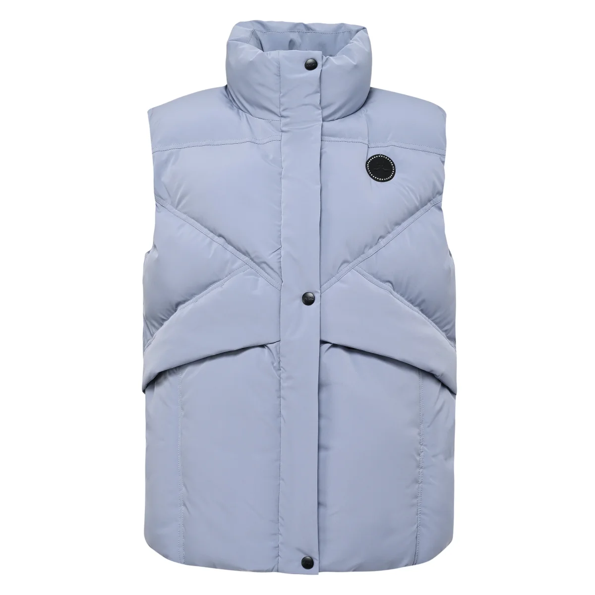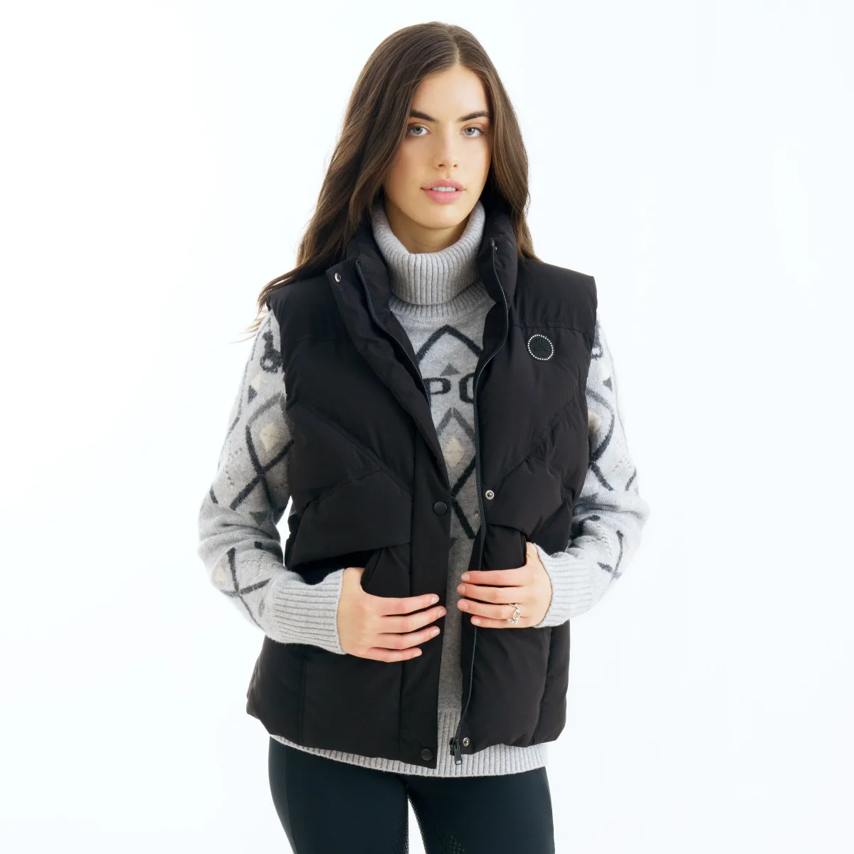 Quiltad ridväst i elegant design med fuskdunsfoder. Hög krage och två-vägs dragkedja. Fickor med dragkedja på utsidan. HV Polo logga på vänster bröst.