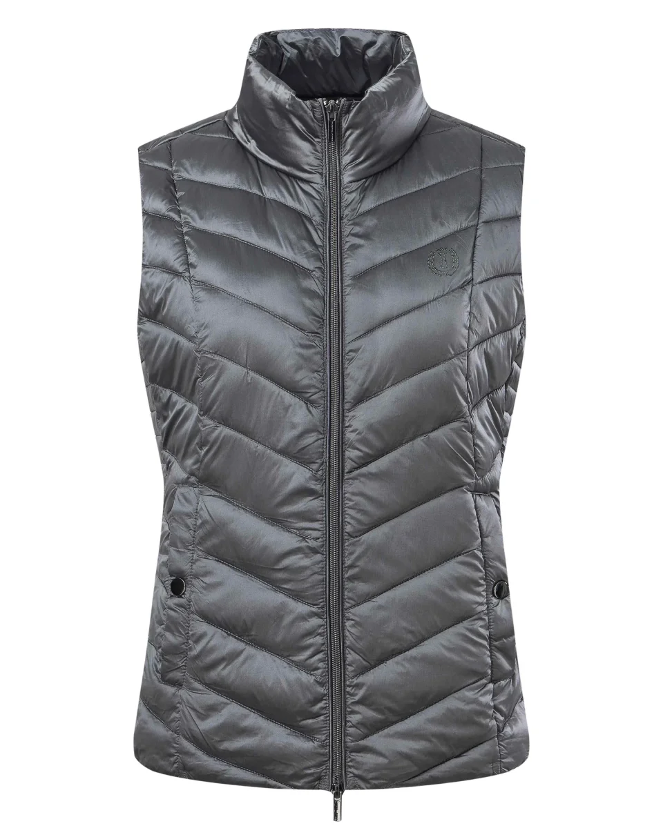 Tunn vadderad väst med 2-vägsdragkedja framtill. Krage och 2 fickor med tryckknapp.