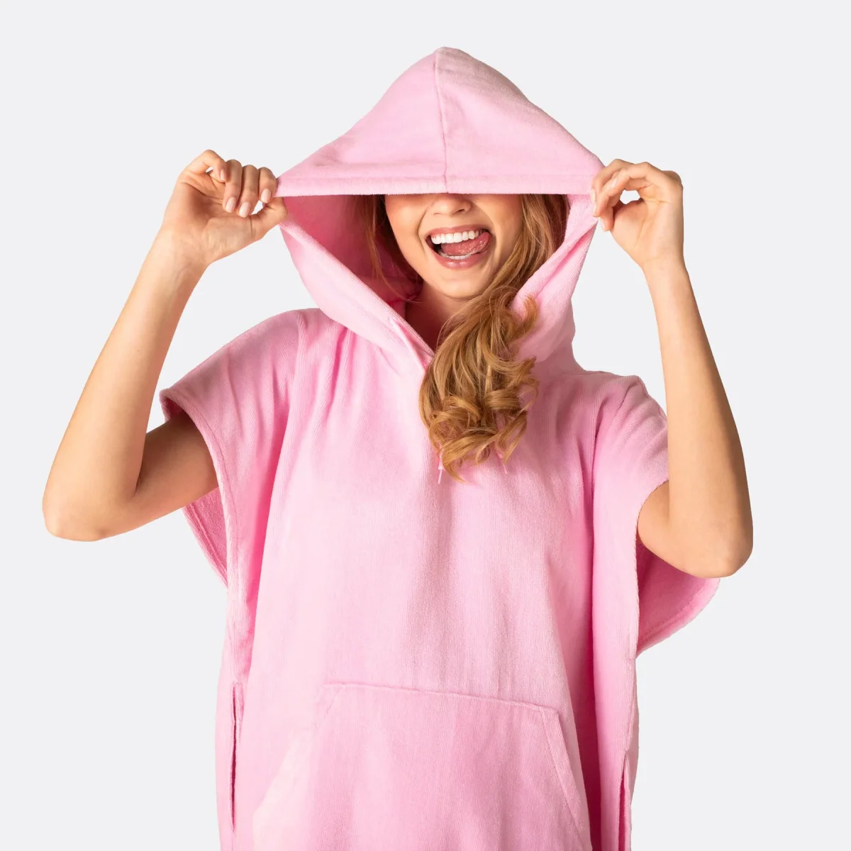 Ponchon har en stor huva och smarta öppningar på sidan som gör det lätt att ta på och av badkläder under!