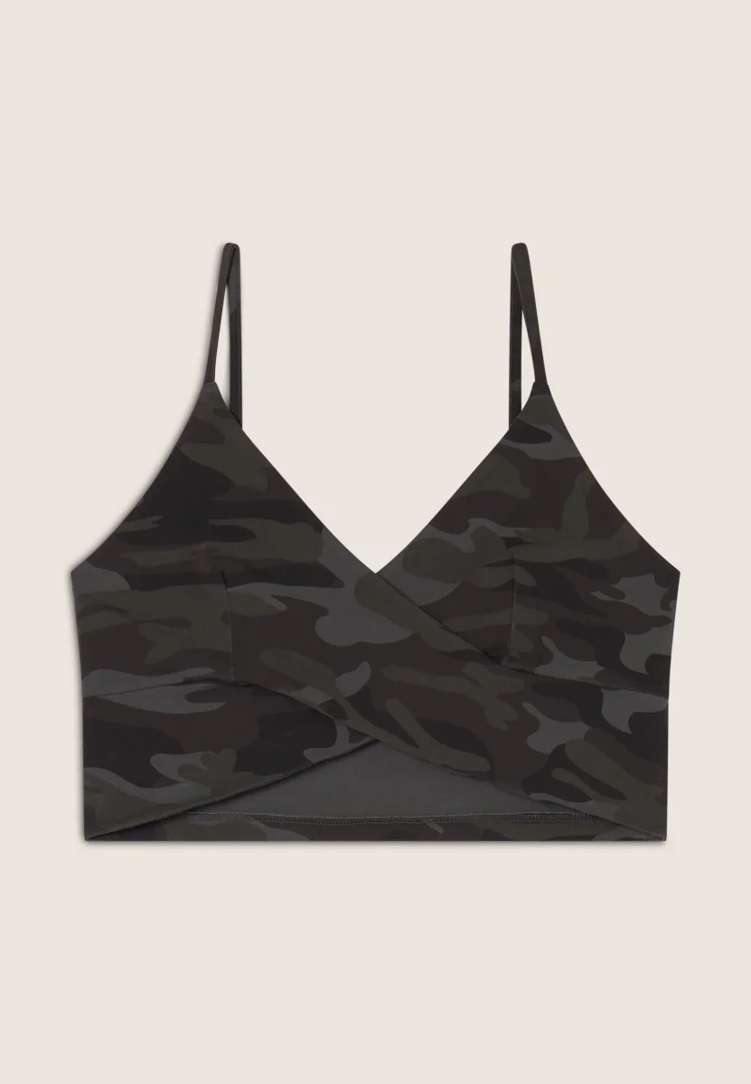 This slim fit top in organic cotton heavy stretch jersey is the epitome of casual-chic style. The ice wash effect on the camouflage print gives a worn-in and modern look, while the play of crosses on the front creates an asymmetrical pattern that emphasises the low neckline. The thin straps and small enamel tab on the back neckline complete the design with refined details.