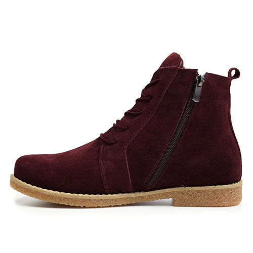 Passar bra för dig med känsliga fötter. Yttersulan i gummi är mönstrad för att ge bättre och mer stabilt grepp på de flesta underlag. Mockaboots med skaft och klassisk snörning som ger en justerbar och bekväm passform. Den mörkröda färgen Burgundy gör att bootsen passar lika bra till vardags som till festligare tillfällen.