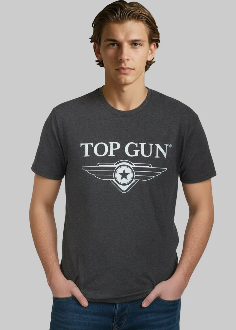 Tröjan har en behagligt bred rund halsringning. Den sportiga passformen gör den mycket bekväm att bära. Den har den typiska Top Gun-texten framtill.