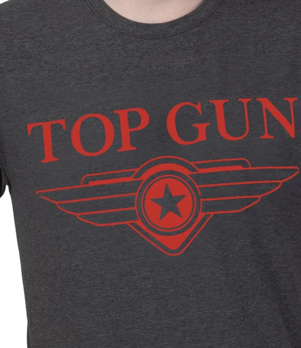 Tröjan har en behagligt bred rund halsringning. Den sportiga passformen gör den mycket bekväm att bära. Den har den typiska Top Gun-texten framtill.