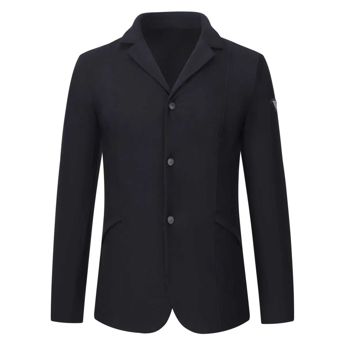 Snygg tävlingskavaj i bekvämt tyg med små hål för god ventilation. Dekorerad med en logga på vänster arm. Dragkedja med tre tryckknappar.