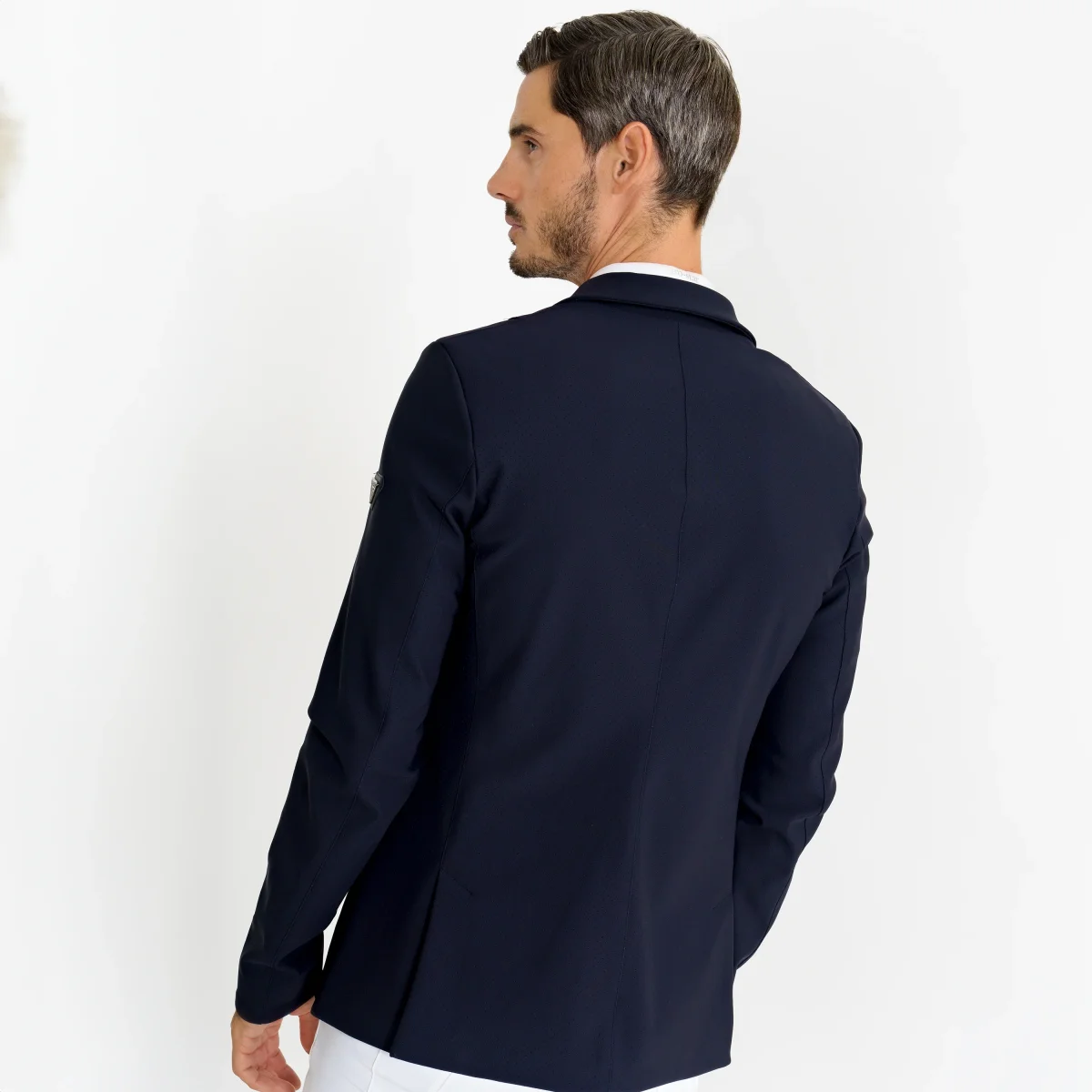 Snygg tävlingskavaj i bekvämt tyg med små hål för god ventilation. Dekorerad med en logga på vänster arm. Dragkedja med tre tryckknappar.