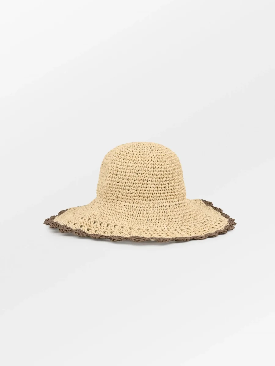 Connie Straw Hat from Becksöndergaard is a lightweight summer hat made from 100% paper straw. The woven design creates an airy look, while the wavy contrast edge adds a refined detail. The bucket-inspired shape provides shade on sunny days.