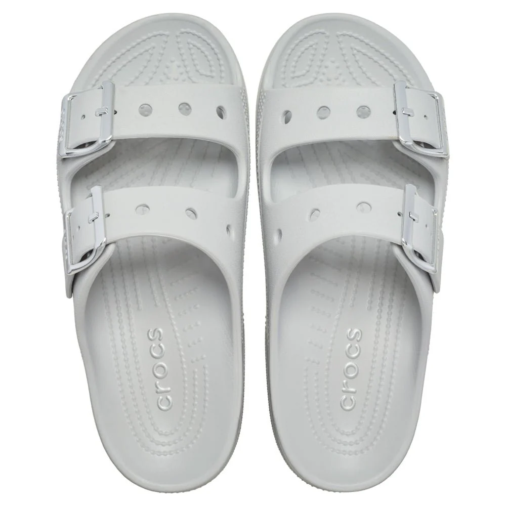 Crocs Saturday Sandal Metallic Buckle är en nyhet från Crocs som har justerbara remmar med spänne i metall. Sandalerna har samma sköna och mjuka fotbädd om man är van vid Crocs sedan tidigare. Crocs Comfort™ ger stötdämpning och en bekväm följsamhet under långa dagar.
