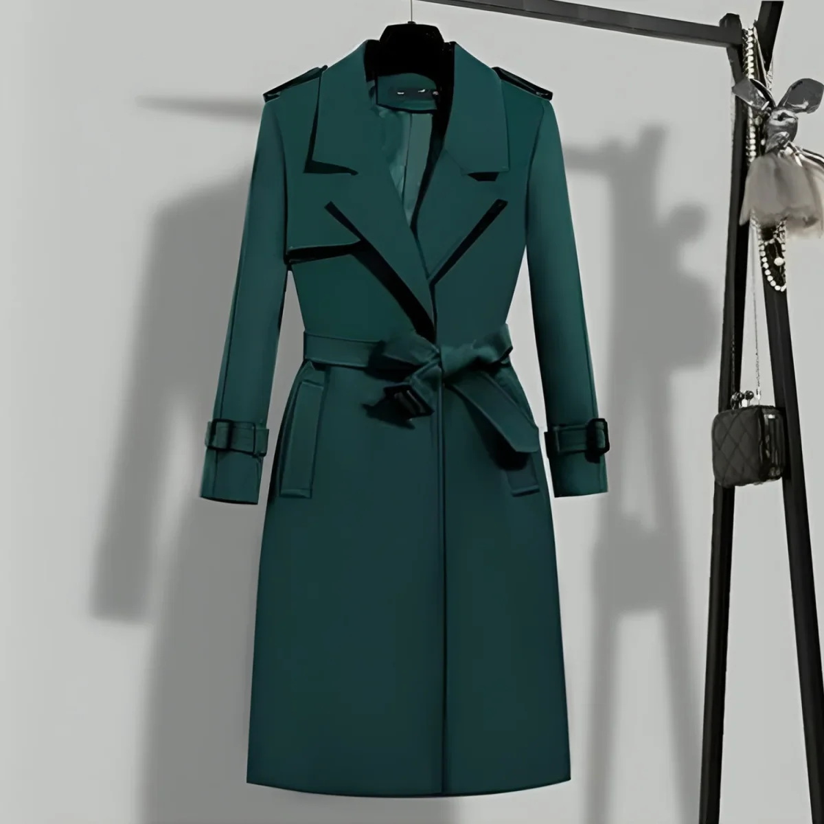Denna damtrenchcoat övertygar med sin klassiska skärning och moderna utstrålning. Den smala designen framhäver din silhuett och ger ett elegant intryck. Material av hög kvalitet skyddar pålitligt mot kyligare höstvindar och erbjuder behaglig bärkomfort. Med avtagbart midjebälte, knappslå och klassisk krage kan kappan kombineras på många sätt – vare sig över klänningar eller avslappnat till jeans.