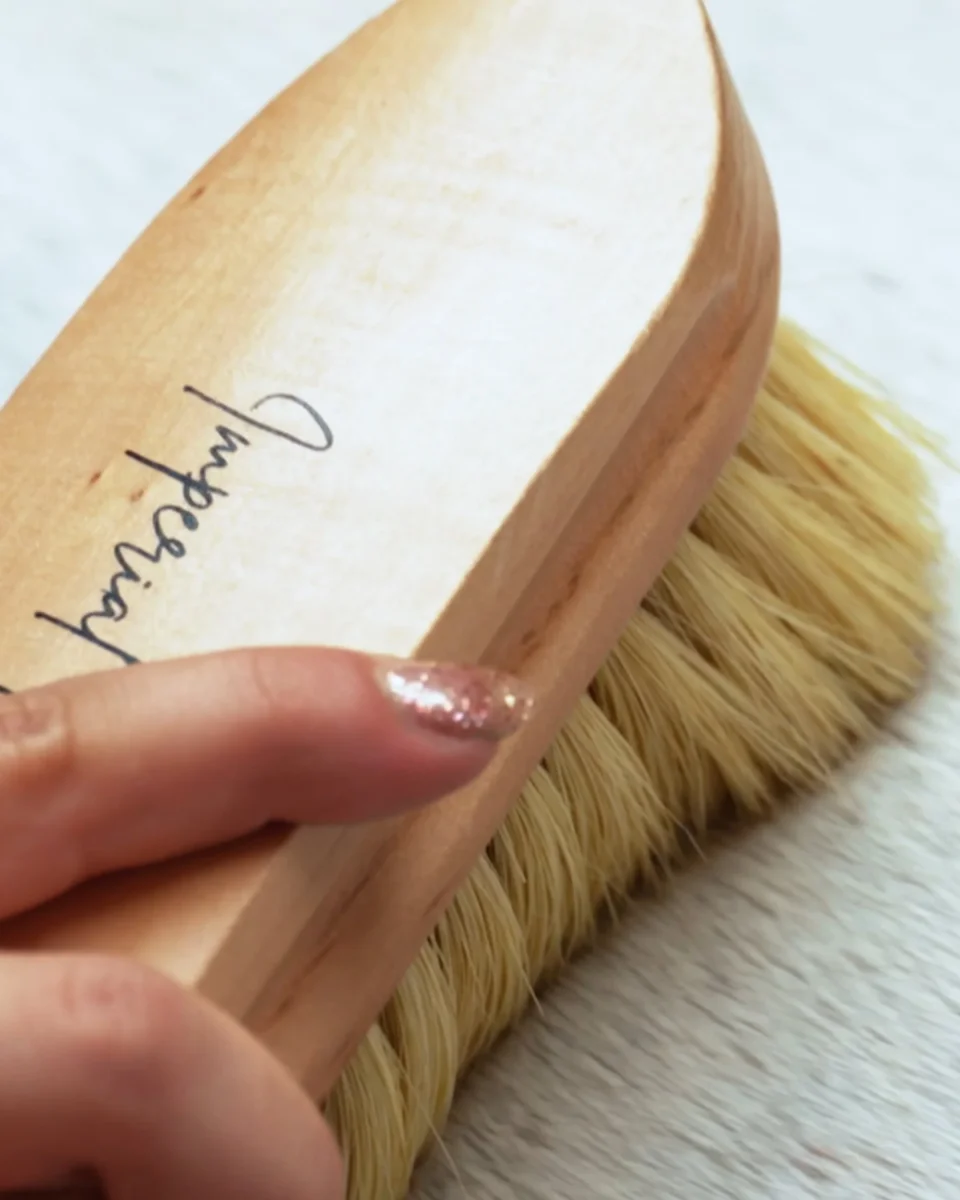 Mjuk borste som är tillverkad av växtbaserade fibrer.