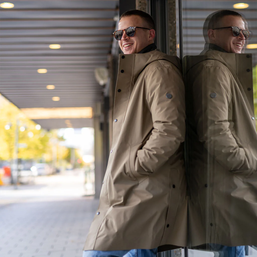 - Elegant design – lång modell med ren, urbant anpassad estetik för både stadsliv och naturvistelse.