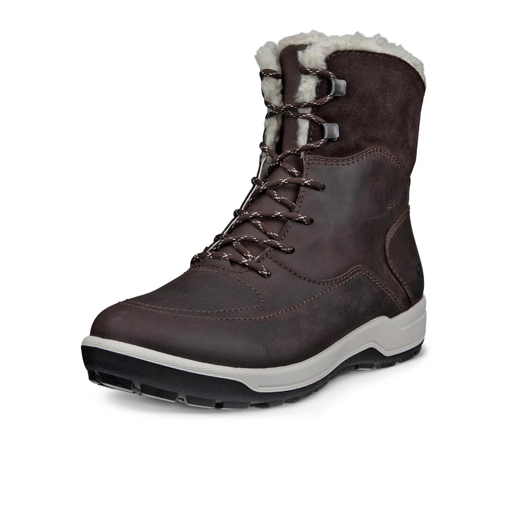 Vinterstövlar från Ecco med högt skaft, varmt foder och vattentätt membran. Den uttagbara fotbädden gör att du enkelt kan använda egna inläggssulor vid behov.