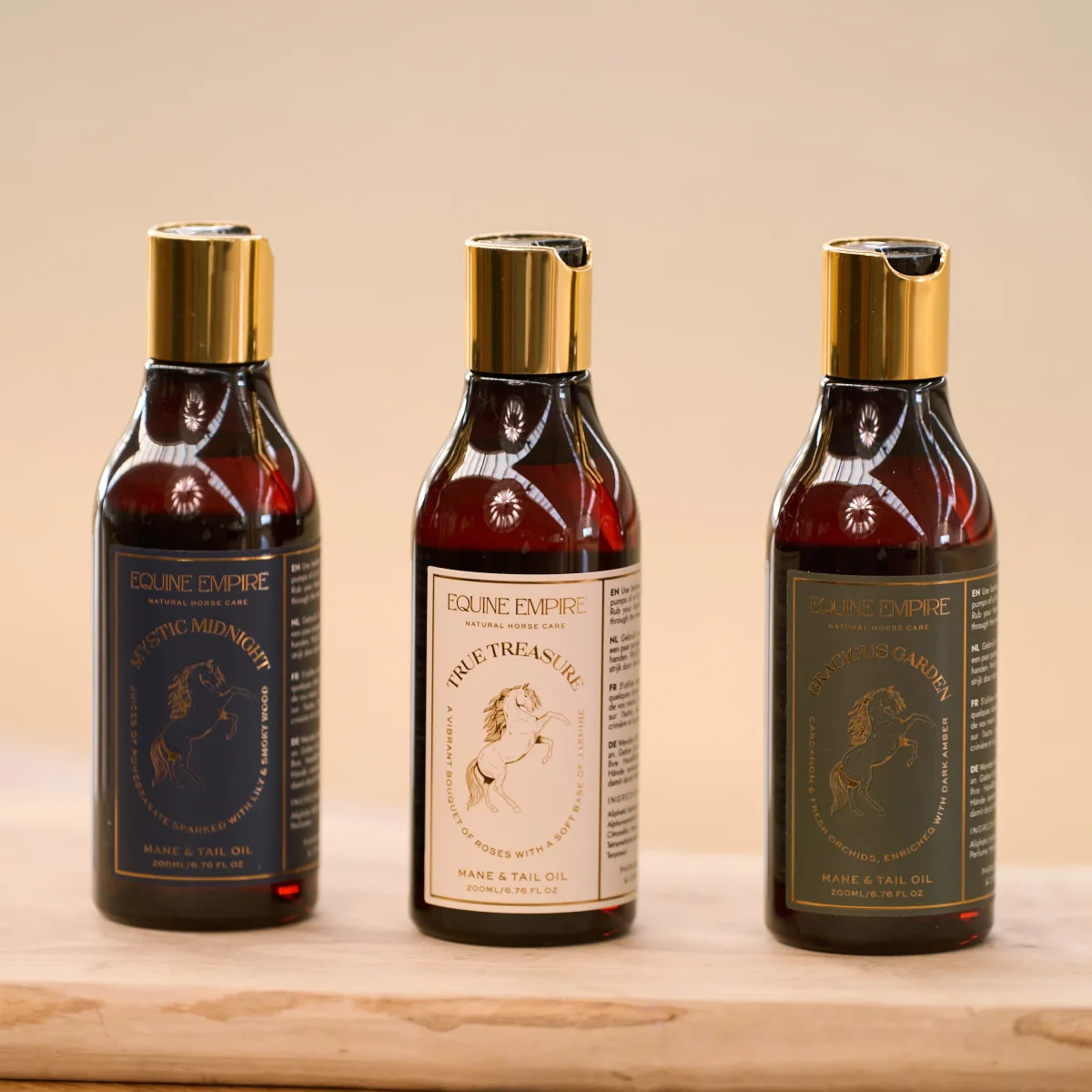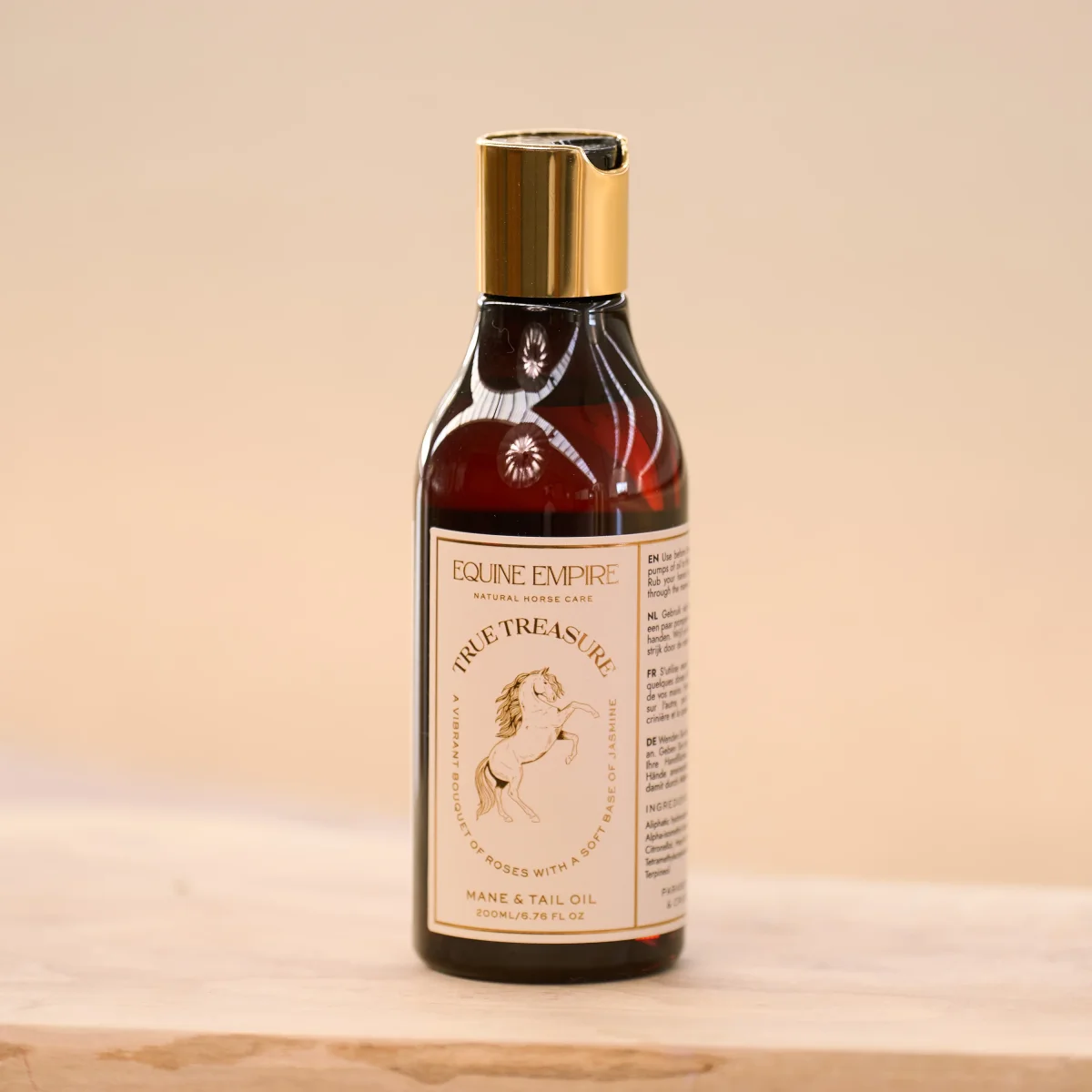 Borsta man och svans. Lägg olja i handflatan och gnid ihop händerna och stryk ut i man och svans. Oljan jämnar ut din hästs hår och är utmärkt för en glänsande finish.