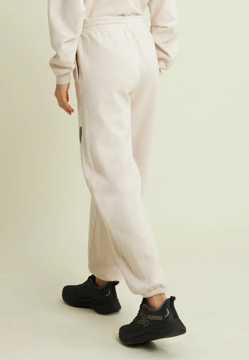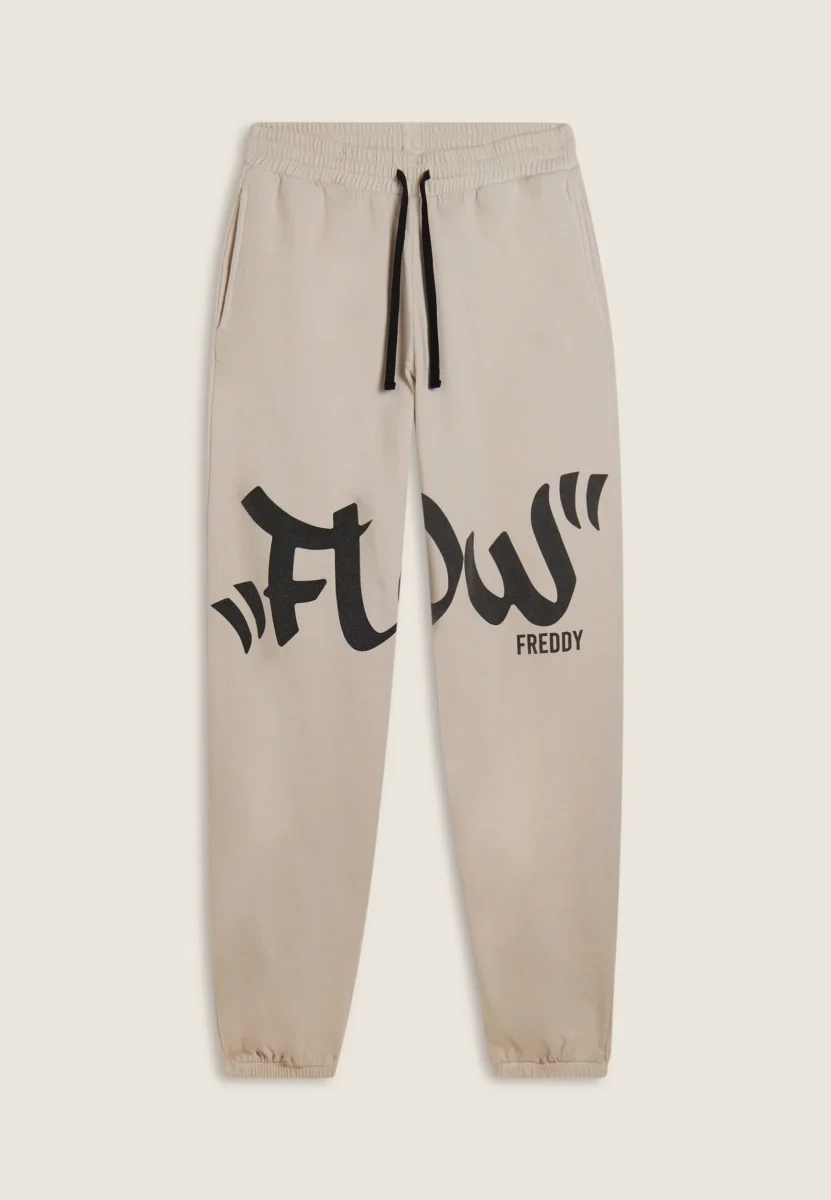 Absolute comfort and street style come together in these fleece trousers with relaxed fit and extra length. The elasticated leg bottoms create a super cool gathered effect, while the “Flow” print across the legs gives a unique touch of street art. The brushed fabric, treated with enzymes, makes the colours more intense and the sweatshirt incredibly soft. Regular waist with drawstring and practical besom pockets: ideal for a comfy yet confident look.