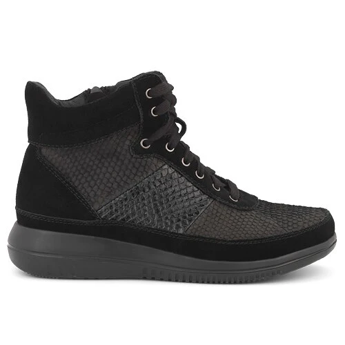 Kängor för dam med snörning och stötdämpande komfort från Green Comfort designade i mocka och laxläder med en rymlig läst.