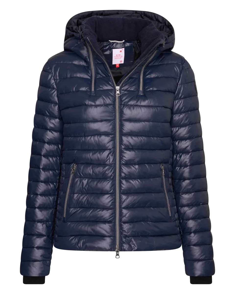 Snygg täckjacka i blankt material och klara färger. Två-vägs dragkedja fram och hög skön krage. Två fickor med dragkedjor på framsidan.