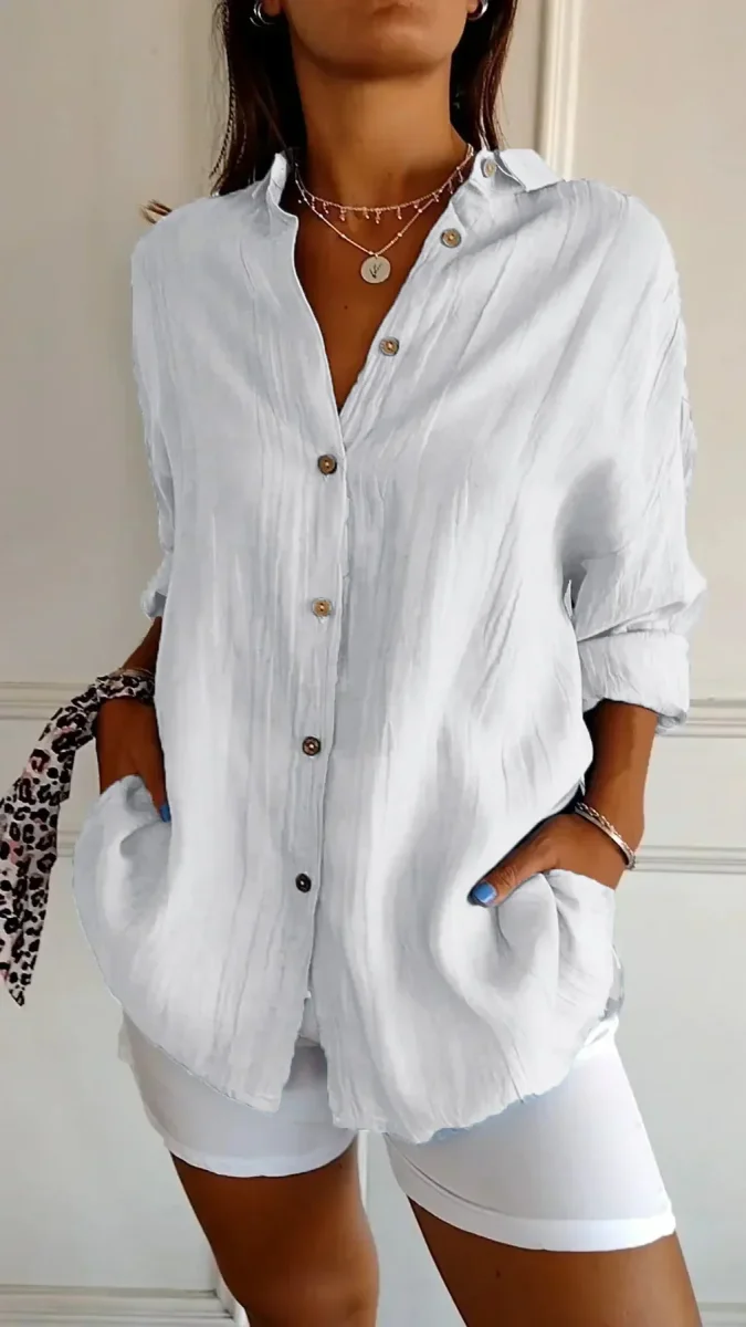 Vår Elodie Lättvikt Damblus förenar en bekymmerslös stil med ultimat bärkomfort. Tack vare den smickrande skärningen och det veckade designen ger denna blus varje outfit en raffinerad touch. Oavsett om du bär den avslappnat eller professionellt, erbjuder Elodie oändliga stilalternativ för varje tillfälle.