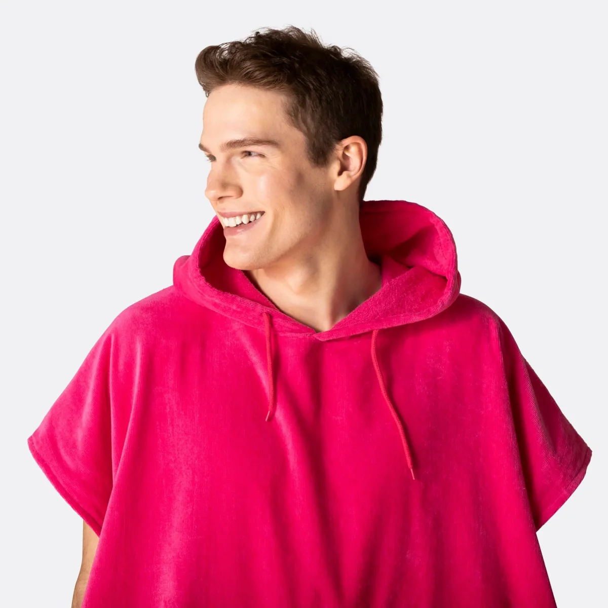 Ponchon har en stor huva och smarta öppningar på sidan som gör det lätt att ta på och av badkläder under!