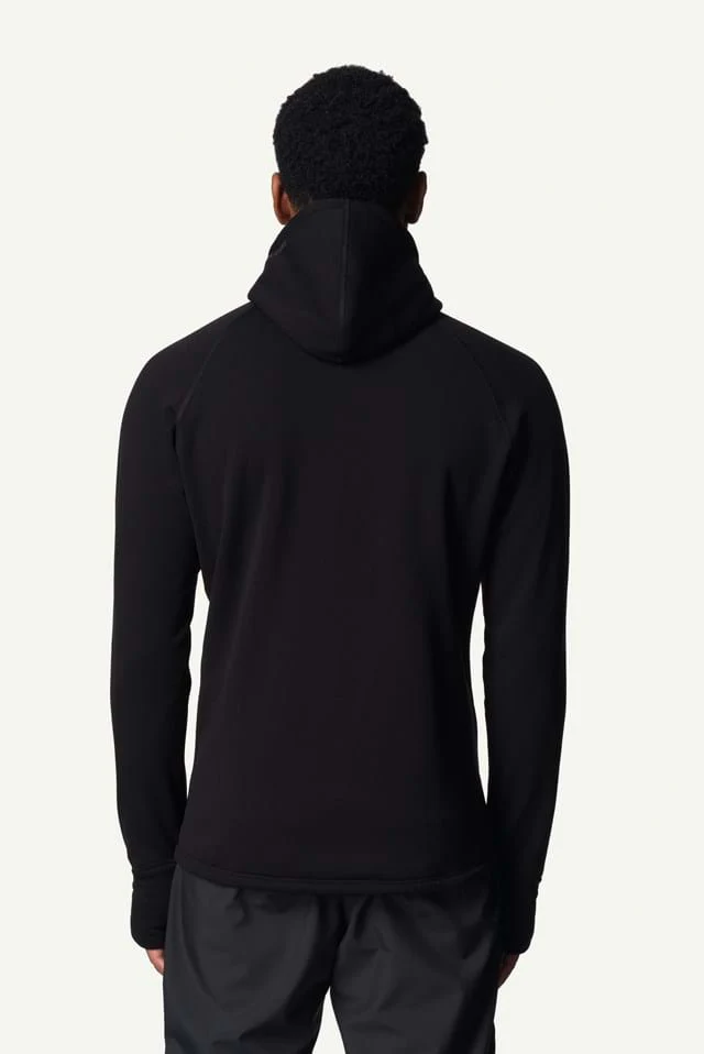 Tröjan är gjord i Polartec Power Stretch Pro, det bästa fleecetyget av sitt slag vi stött på. Det är mjukt, bekvämt och näst intill oförstörbart. Den höga kragen och åtsittande huvan sitter skönt runt nacken och huvudet och de förlängda ärmarna med tumhål håller dina händer varma i kalla grader.