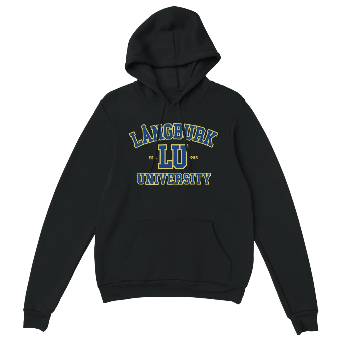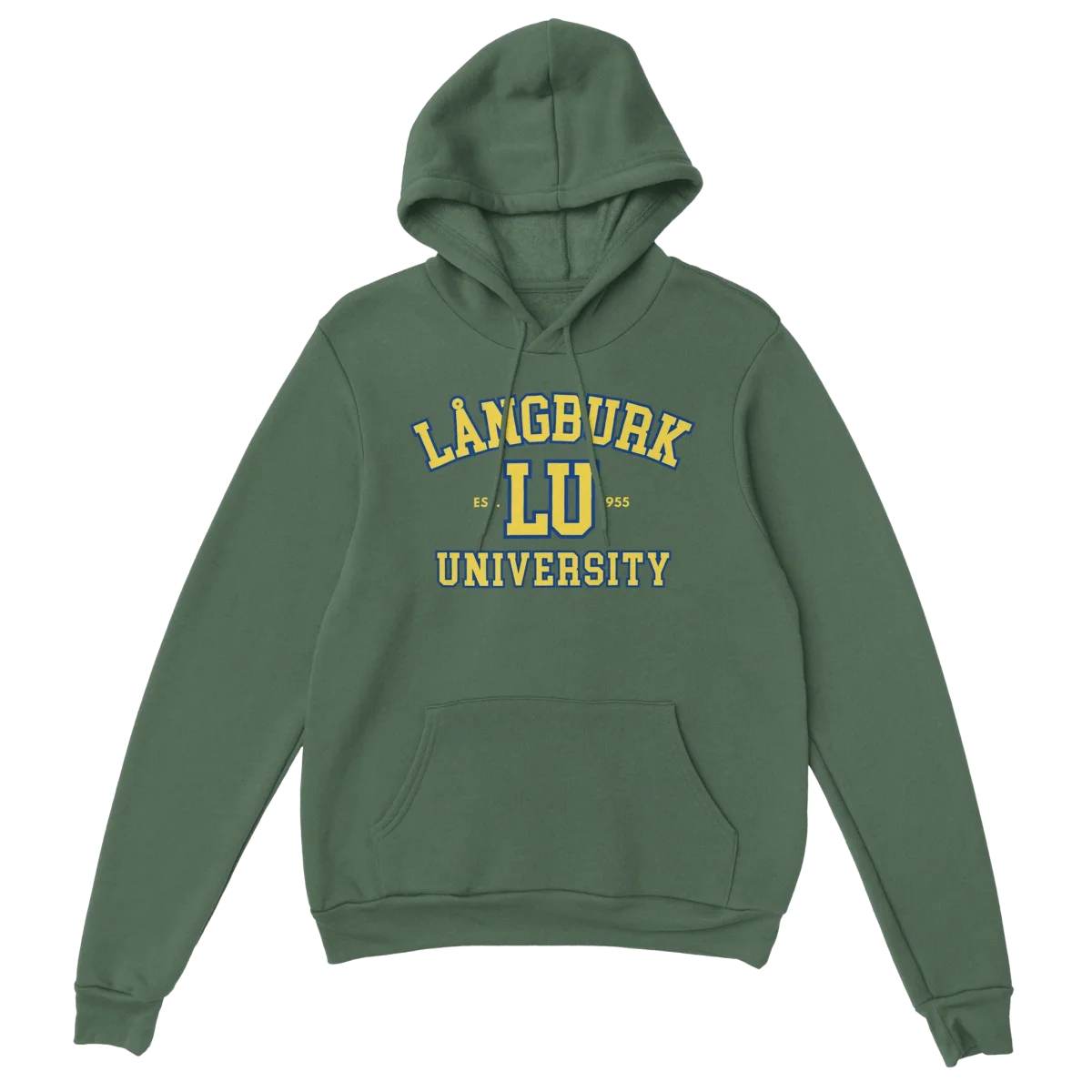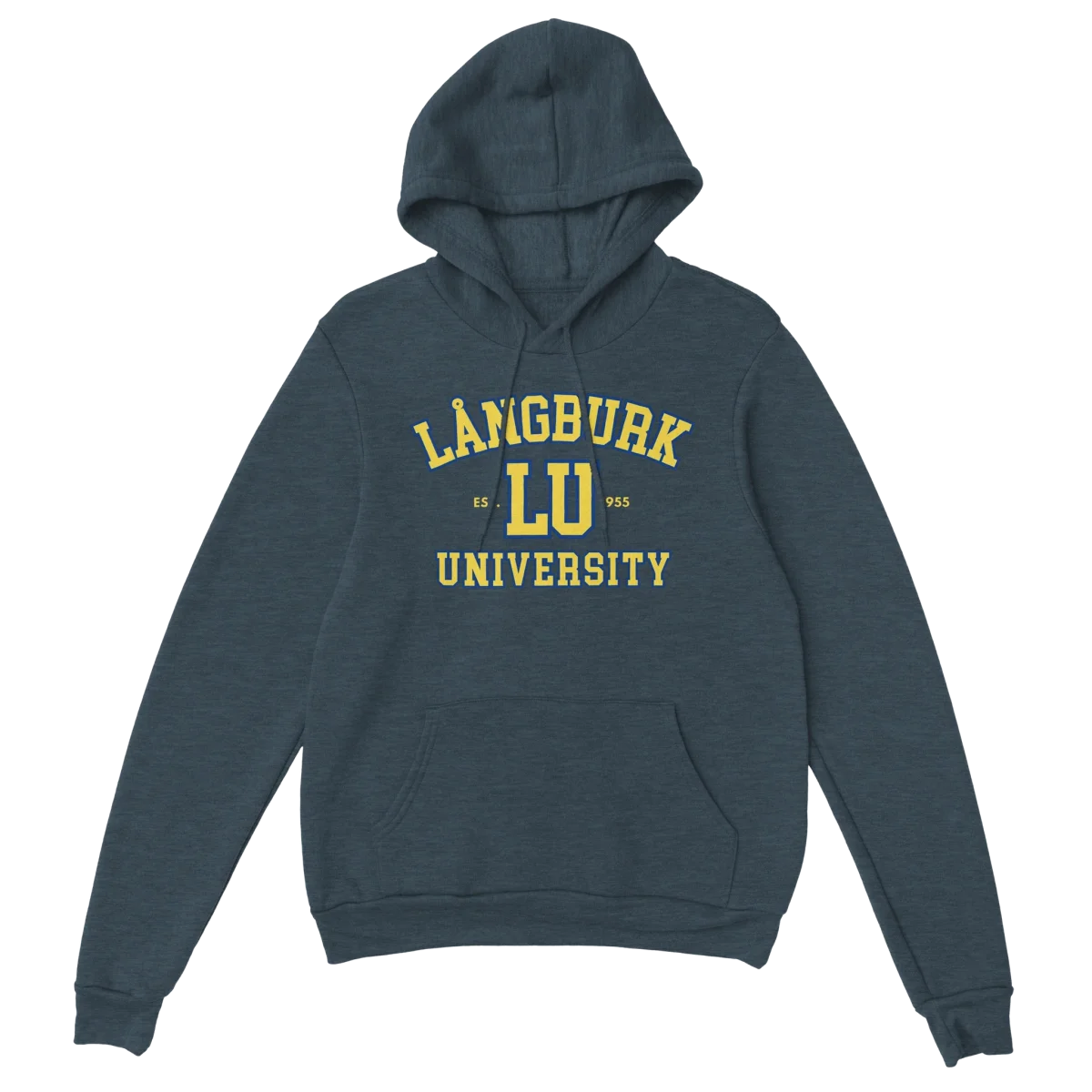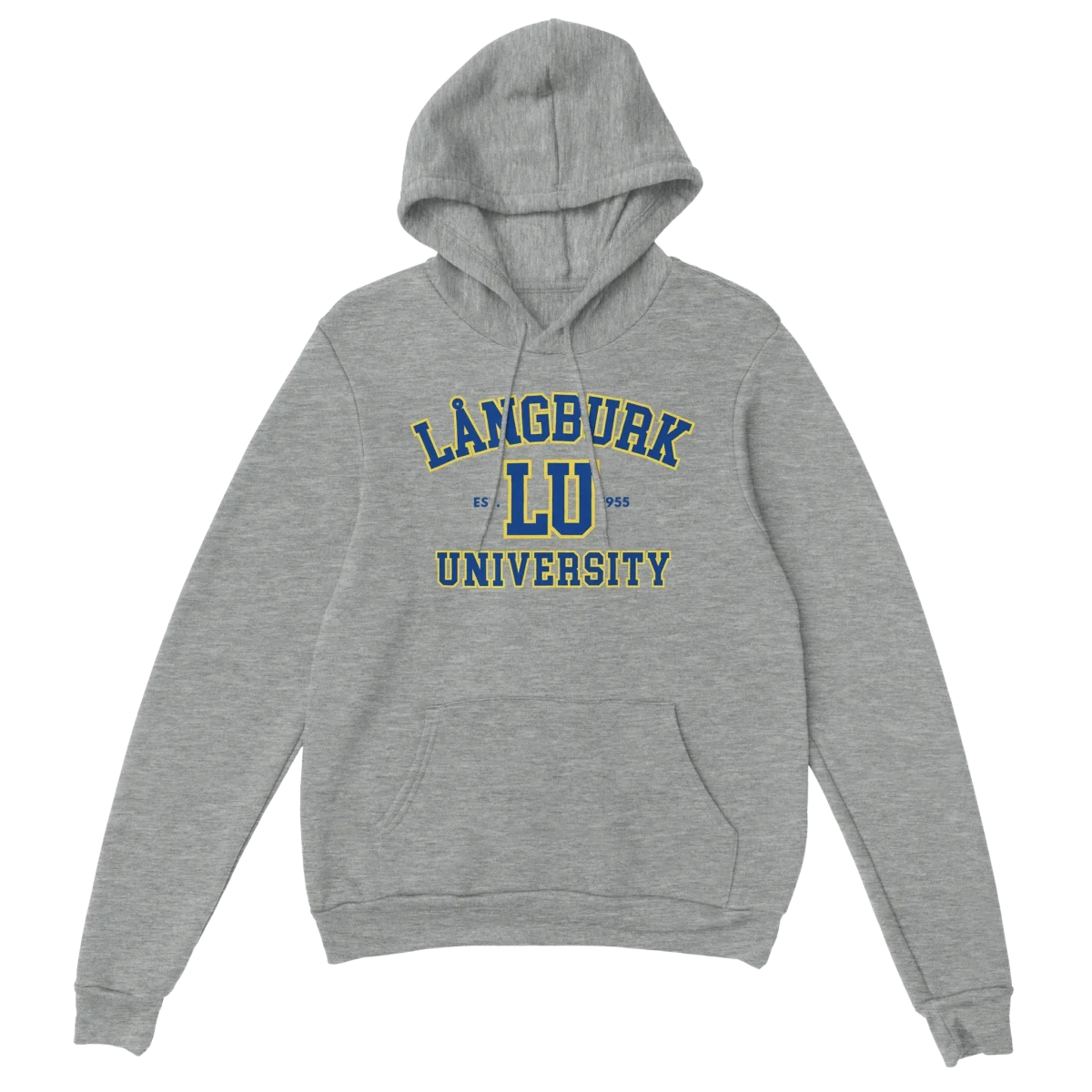 Välkommen till Långburk University! Detta anrika universitet grundades 1955, samma år som ölburken introducerades i Sverige! Några exempel på kurser som erbjuds på skolan är; ”Bryggeriteknik 101”, ”Ölets kulturella betydelse”, ”Öl och ekonomi – APK som nyckeltal” och ”Bryggerihistoria genom tiderna”. På campus finns aktiviteter och föreningar som passar alla! Om sport är din passion, varför inte delta i ”Beer Pong Olympiaden” – universitetets årliga beer pong-turnering. Har du andra intressen är kanske ”Kulturburken”, som utforskar hur öl påverkar vår kulturella historia, något för dig. Eller varför inte ansluta dig till universitetets största förening?! ”Långburk Fan Club” har hundratals medlemmar och där är ölprovningar, humorkvällar och vänskapliga beer pong-turneringar vardag. Med vår Långburk University-tröja kan du visa att du är en engagerad student som omfamnar livets bästa skola
