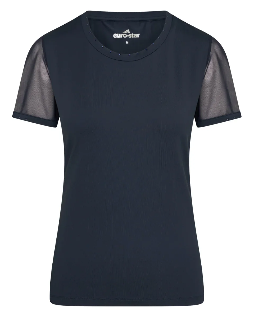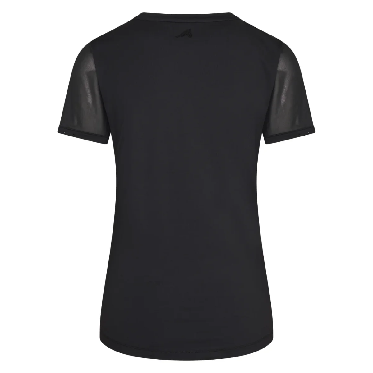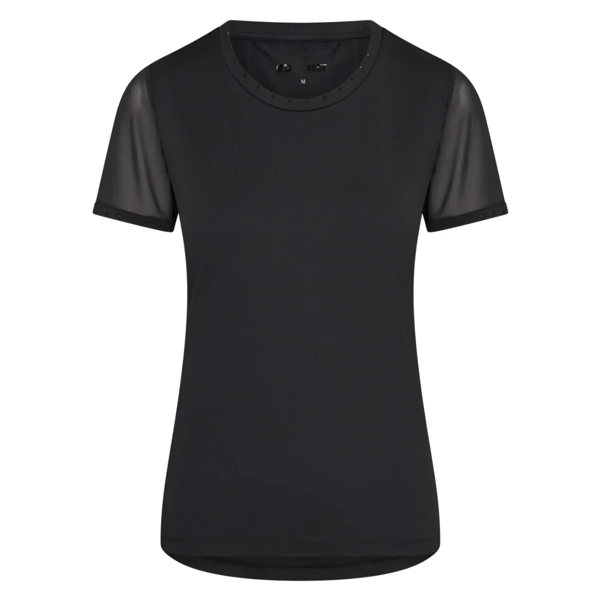 Figursydd t-shirt med crew neck och svala mesh ärmar. Kragen är smyckad med små stenar. Finns i fyra färger, Nostalgic Pink, Dark Berry, Navy och Black.