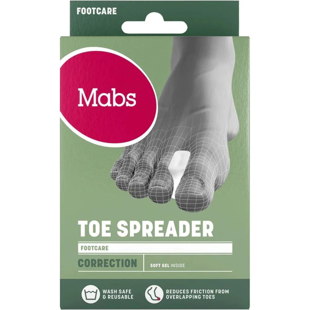 Mabs tåspridare i mjuk gel är en enkel men effektiv lösning för att minska tryck och obehag vid hallux valgus eller tår som ligger tätt ihop. Skyddet hjälper till att räta upp stortån vilket kan kännas avlastande och förebyggande av skav och obehag.
