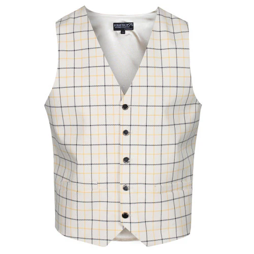 En klassiskt utformad twillväst i traditionellt svart/guld eller svart/rött tattersall mönster och blank rygg.