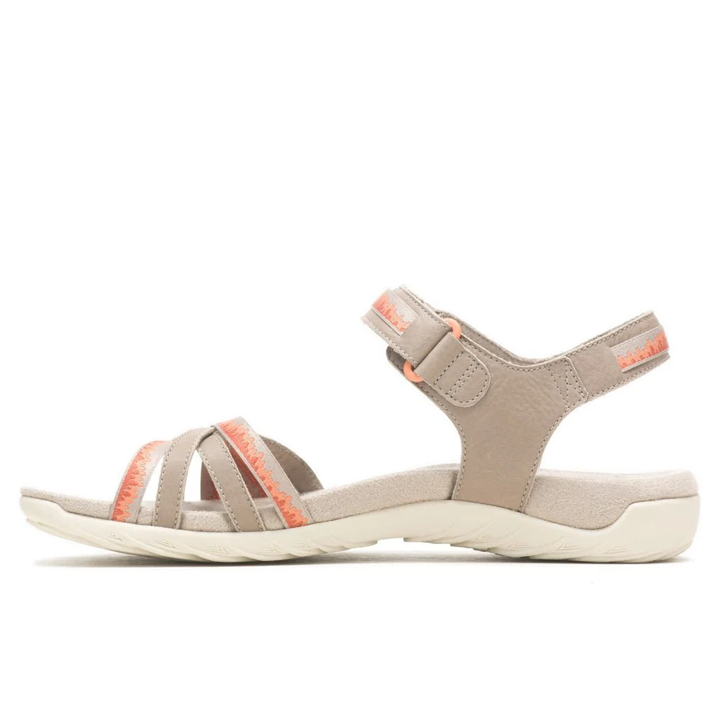Mjuka sandaler Terran 3 Cush Cross från Merrell med bekväm och fotriktig fotbädd. Sandalerna har remmar i kardborre över vristen som du lätt öppnar för att komma i och ur sandalen samt kan justera för bästa passform.