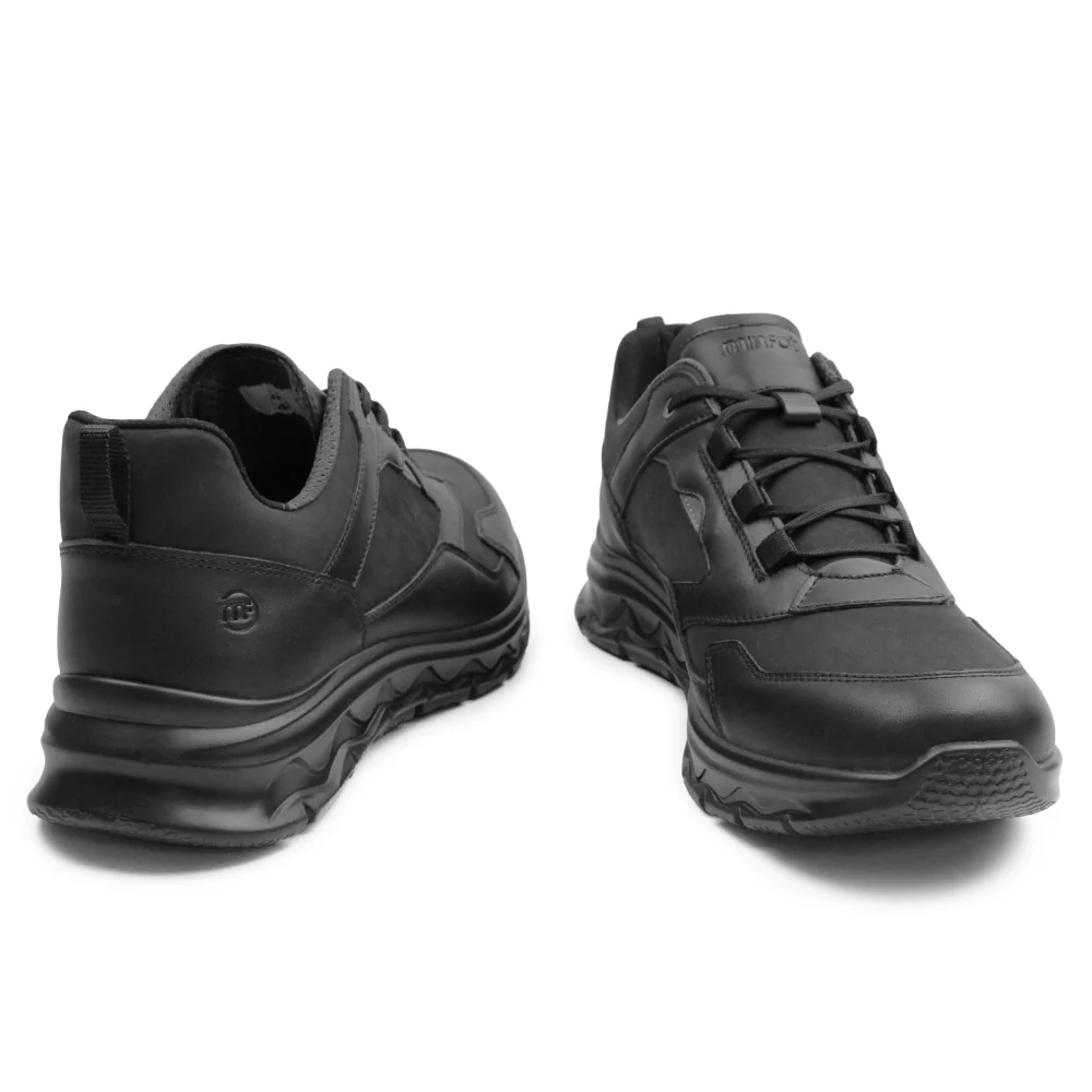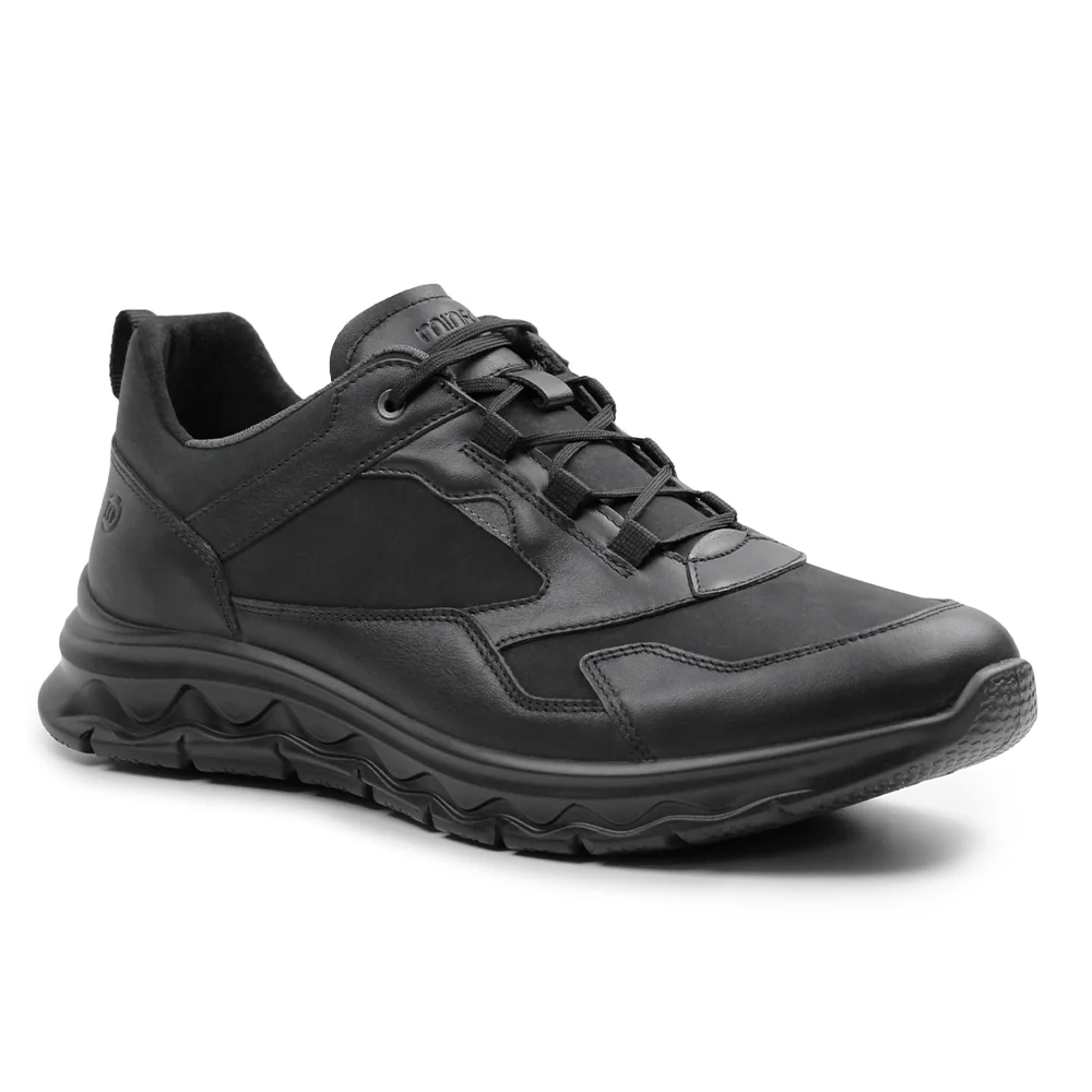 Svarta sneakers i stilren design där både ovandel och sula är svart för ett enhetligt utseende. Klassisk snörning för optimal passform. Mjuka herrskor för promenader eller att ha på jobbet, snygg design som passar till de flesta tillfällen. Skor som väger lätt och ger bra stötdämpning och mjukt stöd i varje steg.