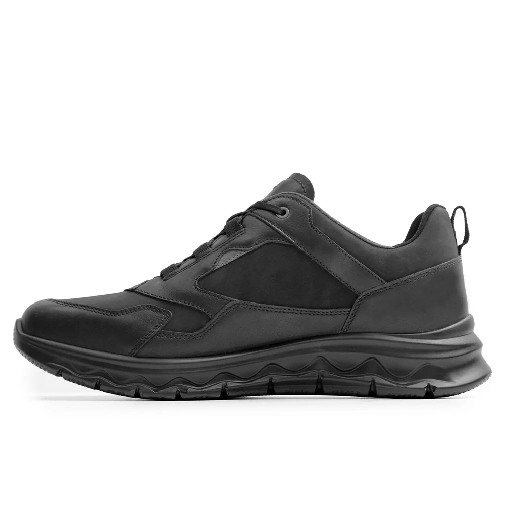 Svarta promenadskor i läder. Lätta herrskor med en lättviktig PU-sula vilket ger jämn dämpning över hela foten.