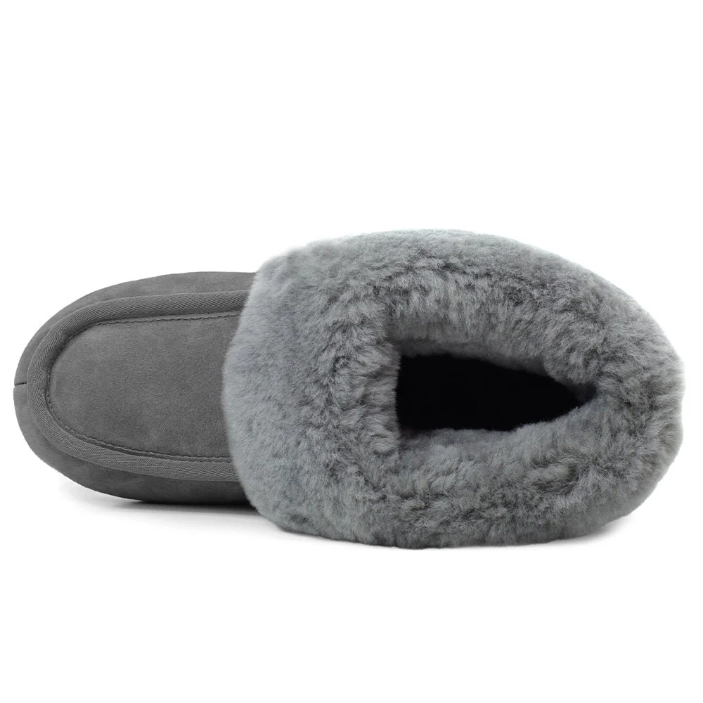 Minfot Fårskinnstofflor Hemse med sula Grafit Grå i klassisk modell med äkta fårskinn