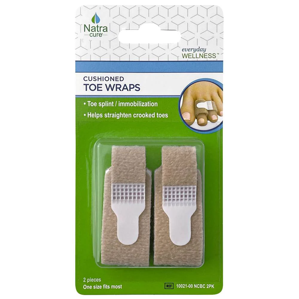 Trä skyddet över den tå du har problem med, den vita sidan uppåt, trä fästremmen under och runt den intilliggande tån. Håll problemtån rak och fäst sedan med kardborre.