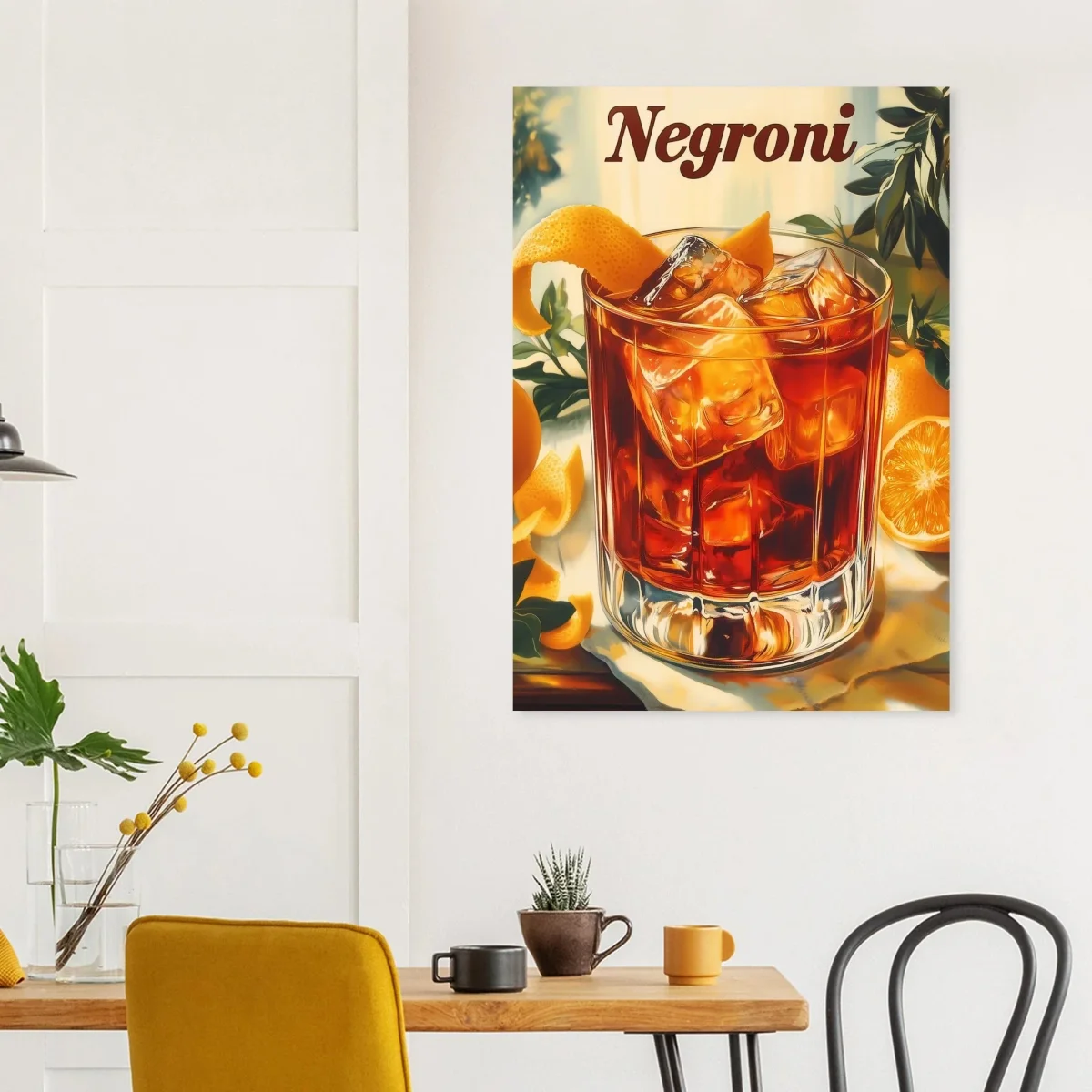 Den här postern fångar essensen av Negroni – den eleganta, bitterljuva klassikern som blivit en favorit bland finsmakare världen över. Med sin fylliga färg, glittrande is och fräscha apelsintwist är motivet lika stilrent som drinken är ikonisk. Perfekt för köket, hemmabaren eller vardagsrummet – där det alltid finns plats för lite italiensk cocktailkultur. Skål!