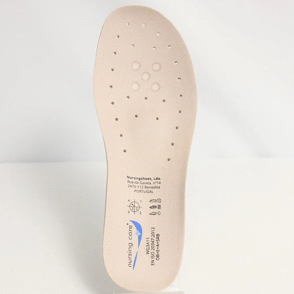 Innersulan är både mjuk och dämpande, designad för att ge optimalt stöd under långa arbetsdagar eller som bekväma inneskor hemma. Den ergonomiskt utformade sulan bidrar till att förhindra trötta ben och fötter genom att absorbera stötar när du går. Yttersulan är utformad med stötdämpning och har antihalk-funktion för att ge extra säkerhet på olika ytor. Dess antistatiska egenskaper är särskilt fördelaktiga för de som arbetar inom specifika yrkesområden.