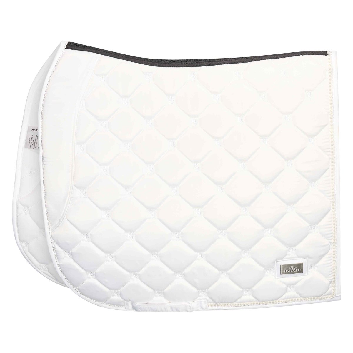 Schabraket är polstrat framtill för att förhindra att sadeln glider. Extra utrymme vid manken och meshfoder för andningsförmåga. Mesh utmed rygglinjen för ett bättre luftflöde. Pärlor utmed kanten baktill och en logga i metall.