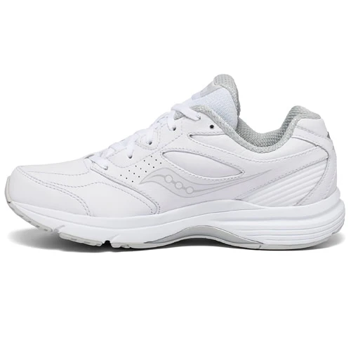 Saucony Integrity Walker 3 är stötdämpande vita promenadskor i fullnarvigt nappaläder med sömlös komfort invändigt, vilket gör dem idealiska för den med känsliga fötter eller för dig som har diabetes.