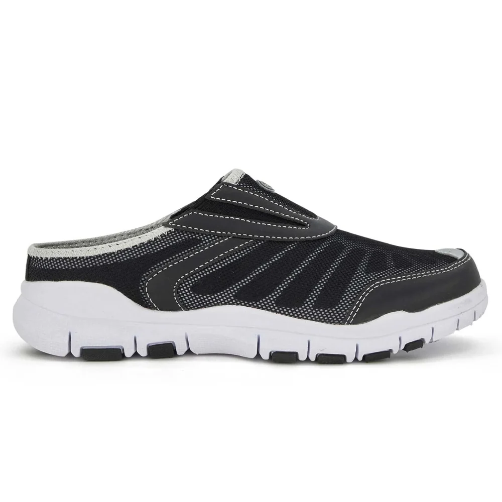 För att hålla den löstagbara fotbädden på plats har tofflorna en låg bakkappa. De är lätta i vikten och har en stötdämpande yttersula i EVA med bra grepp. Med normal läst och passform fungerar de utmärkt som pronationsskor, fritidsskor och innetofflor.