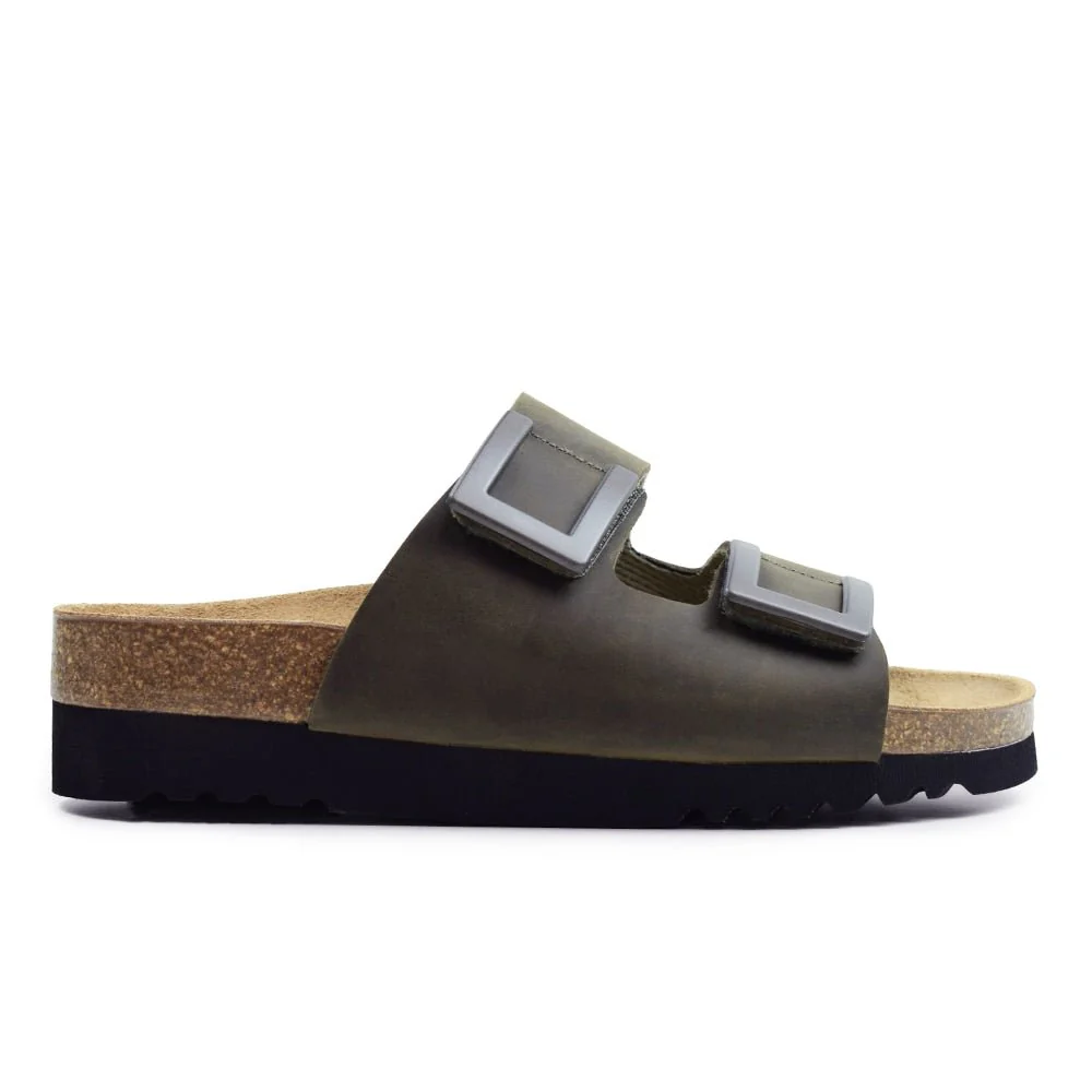 Bekväma sandaler med ergonomisk design, hög kvalitet och tidlös stil. Sandaler med en slitstark ovandel i oljat läder och två breda remmar med stora spännen och praktisk kardborreknäppning som gör det enkelt att justera passformen.