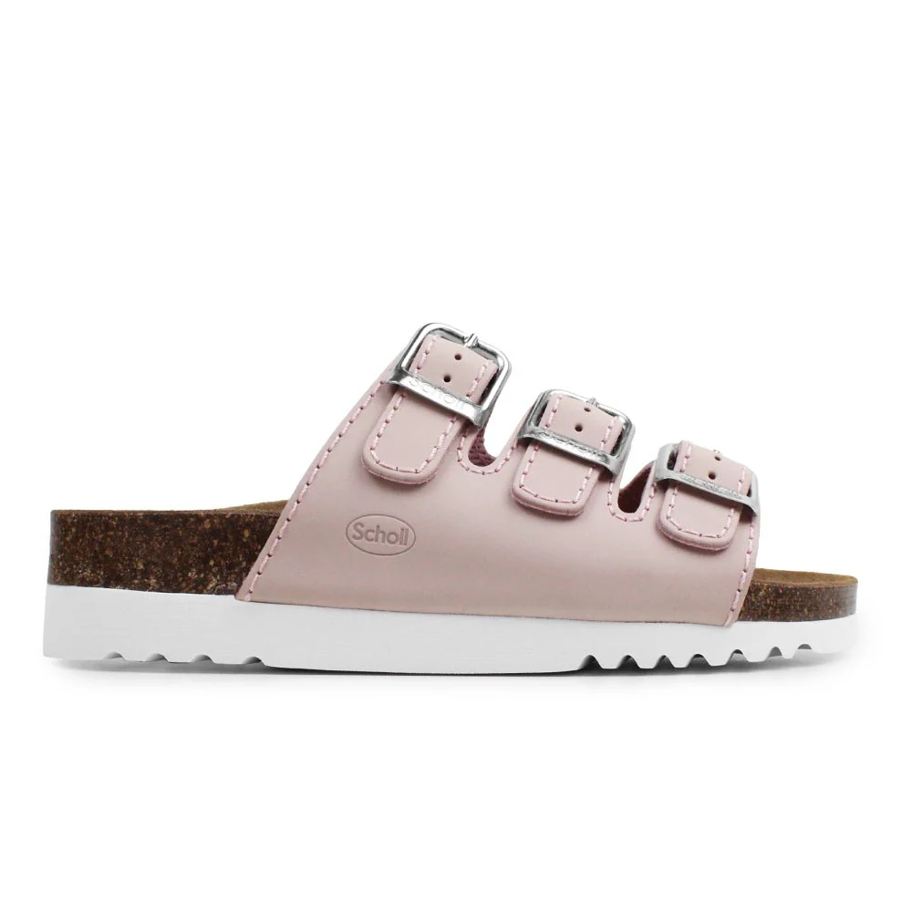 Scholl Sandaler Rio AD Ljusrosa har Bioprint-fotbädd som ger stabilitet och utmärkt komfort. Ovandel av rosa läder med tre reglerbara remmar.