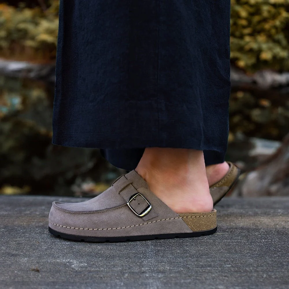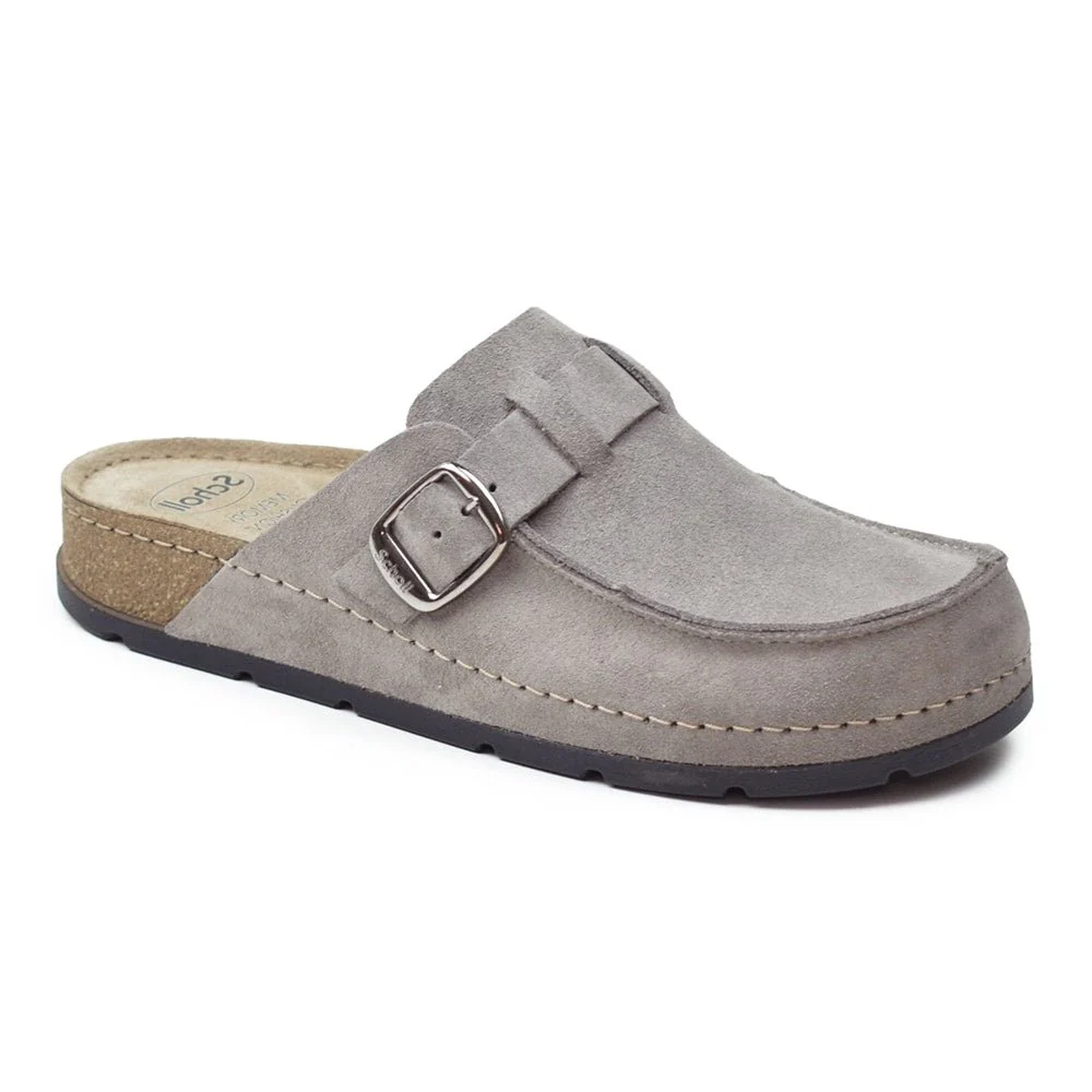 Bekväma tofflor från Scholl med Memory Cushion® och ovandel av mocka, mjuka och stötdämpande.