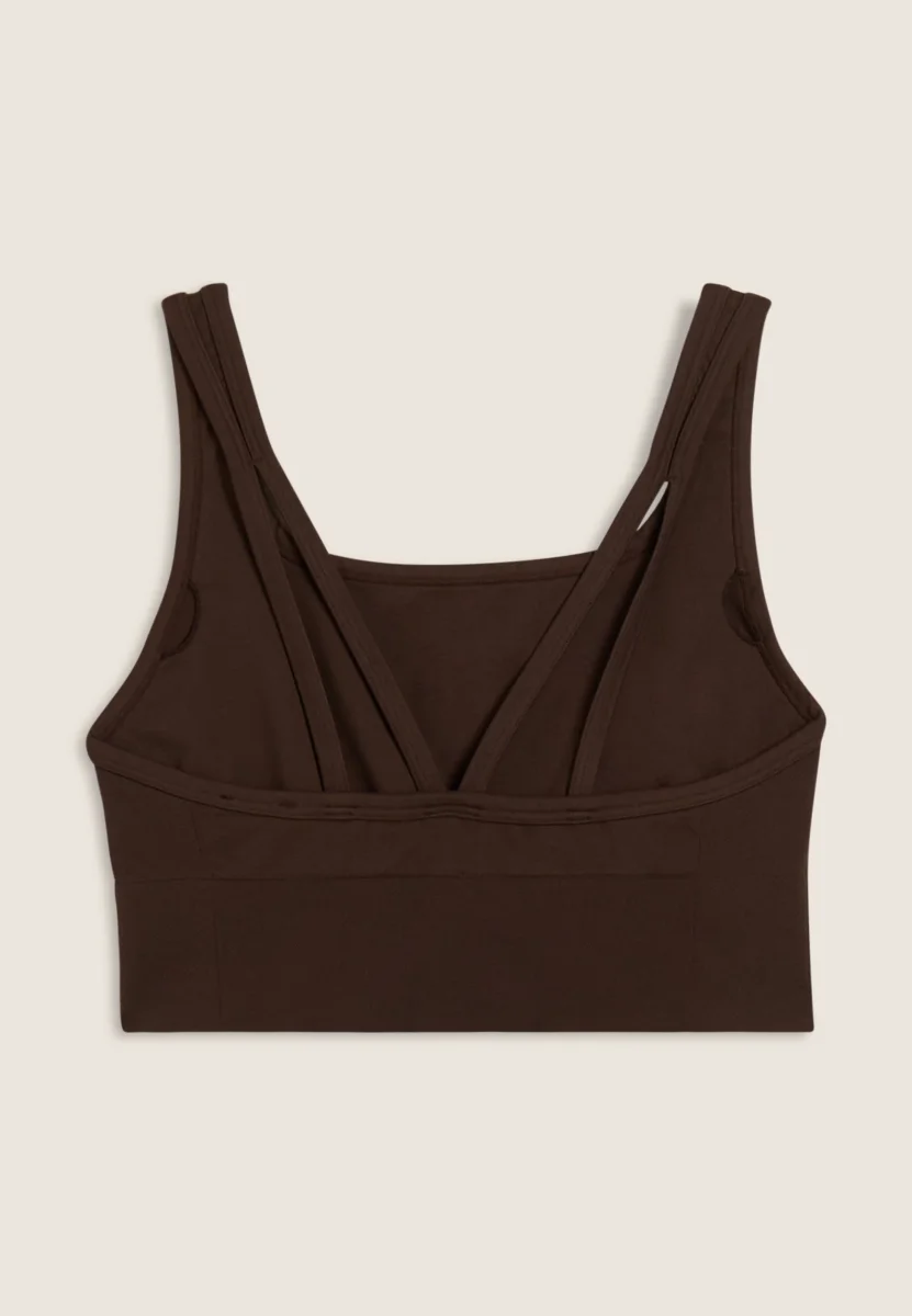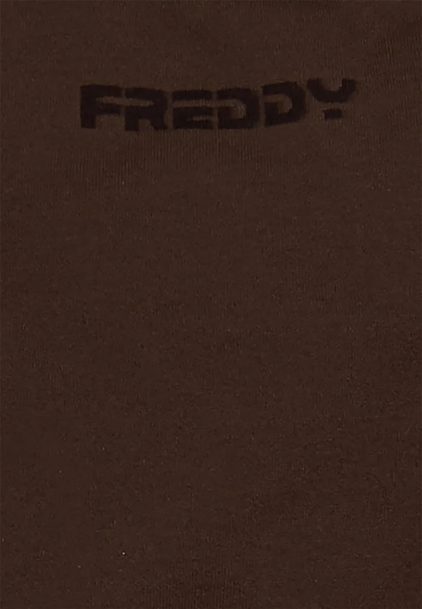Medium support sports bra with removable moulded cups, ideal for daily training. The cut is designed to offer support and style: round neckline, regular shoulder straps crossed at the back, and side inserts in herringbone textured fabric. The nylon jersey fabric is breathable and durable.