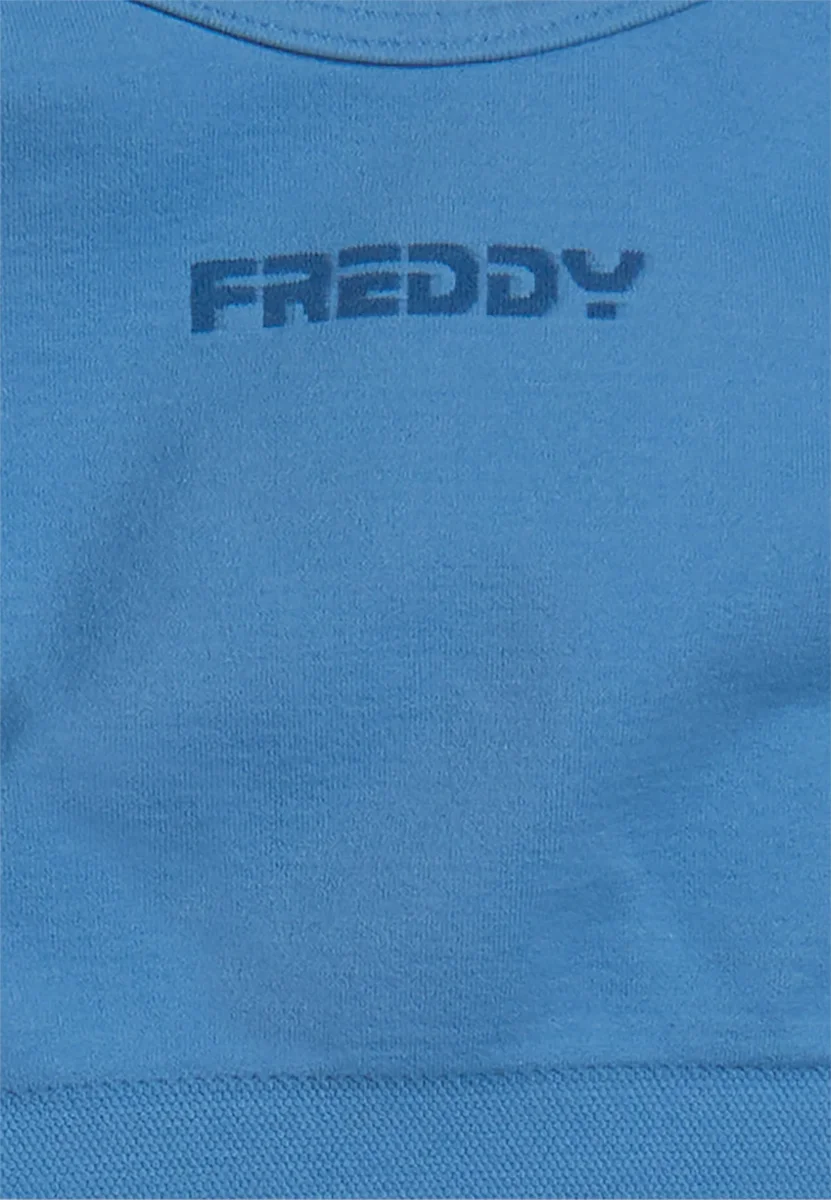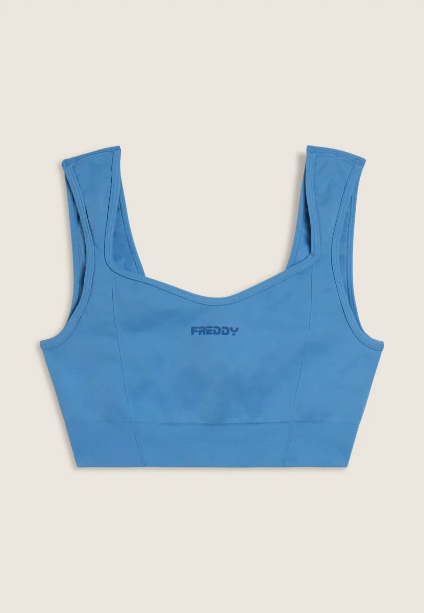 With its feminine and comfortable design, this light support sports top is perfect for yoga and low intensity activities. Sweetheart neckline at the front and square neckline at the back with regular shoulder straps. The nylon jersey performance fabric is soft, breathable and lightweight, with a small FREDDY contrasting logo on the front.