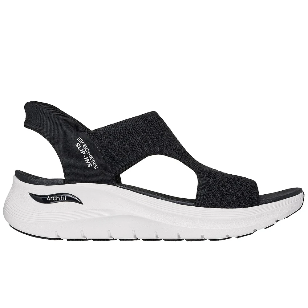 Skechers sandaler Sling Back för dam med en unik slip-in funktion som inte kräver att du använder dina händer. Den specialdesignade hälremmen gör att man stiger ner i sandalen bara genom att trycka ner foten. Hälremmen hålls uppe och har en mjukt vadderad insida närmast hälen för bekvämlighet. Med dessa sandaler upplever du en frihet utan krångliga remmar som måste öppnas och stängas.