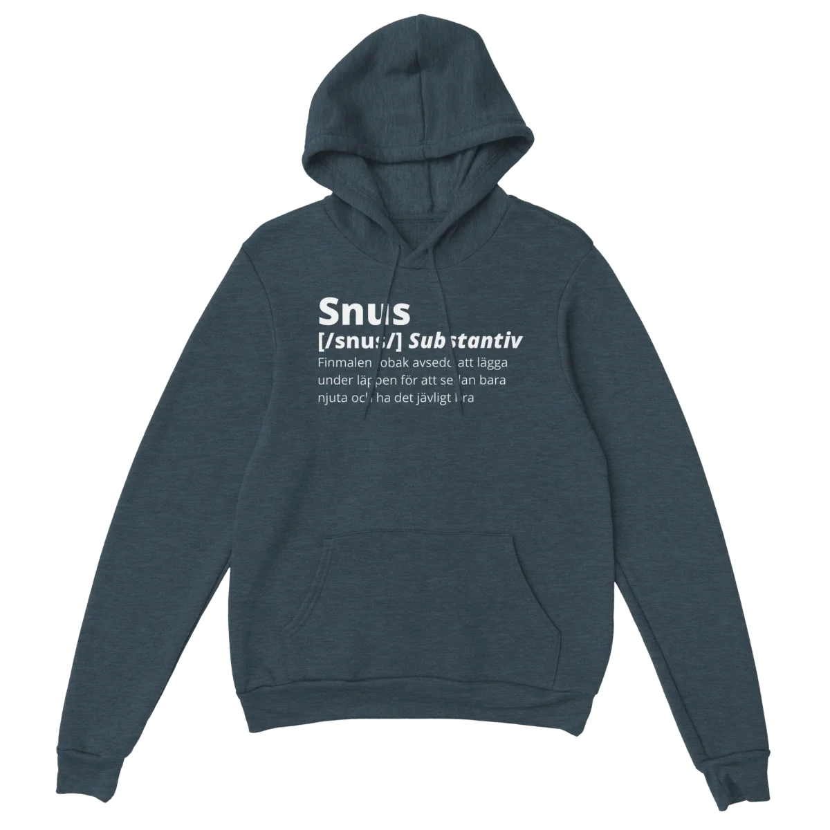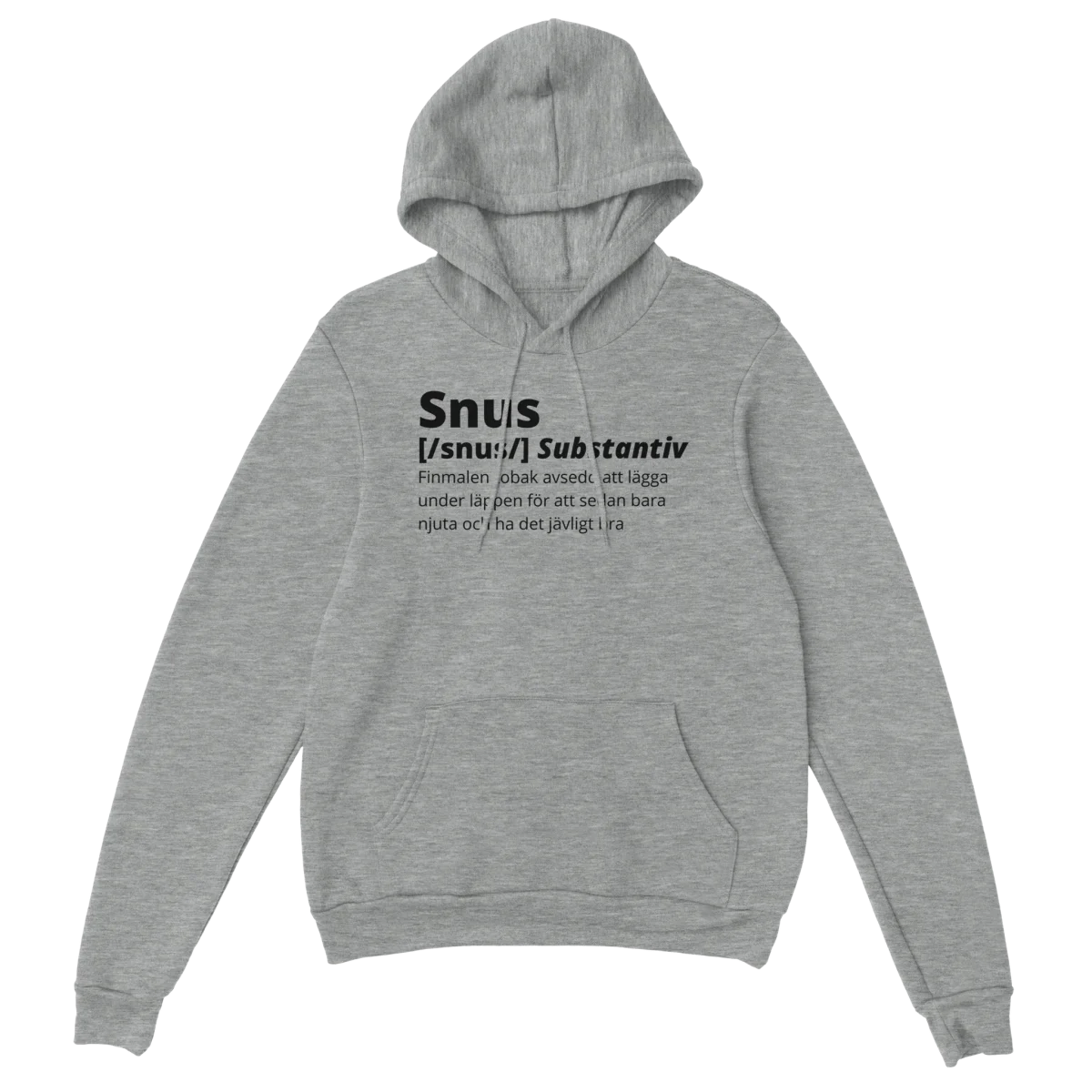 Snus är en form av tobaksprodukt som används i Sverige och andra delar av Norden. Det har en lång historia som går tillbaka till 1500-talet, då det först introducerades av svenska soldater som kom hem från krig i Finland. Snus har sedan dess varit en populär form av tobak i Sverige och har blivit en del av den svenska kulturen. Denna hoodie har definitionen av snus, från vår egen ordbok, tryckt på bröstet, vilket är en rolig hyllning till denna historiska produkt.