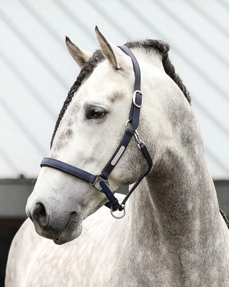 Equilibriums nya säkerhetsgrimma är snygg, rejäl och funktionell. Det unika med denna grimma är att den har ett återanvändbart säkerhetssystem. Tillverkad med ett hållbart, väderbeständigt material och med stöd av vetenskapliga tester. Stellar All-Weather Safety Headcollar är idealisk för daglig användning som ett säkert alternativ.