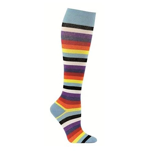 Färgglada, randiga stödstrumpor i turkos och flera andra färger från SupCare. Stödstrumporna har kompressionsklass 1 (15-21 mmHg). Genom att använda ett par stödstrumpor förebygger du trötta, ömma och svullna ben. SupCares stödstrumpor passar för resande, för dig som är gravid, som står och går mycket eller har anlag för åderbråck.