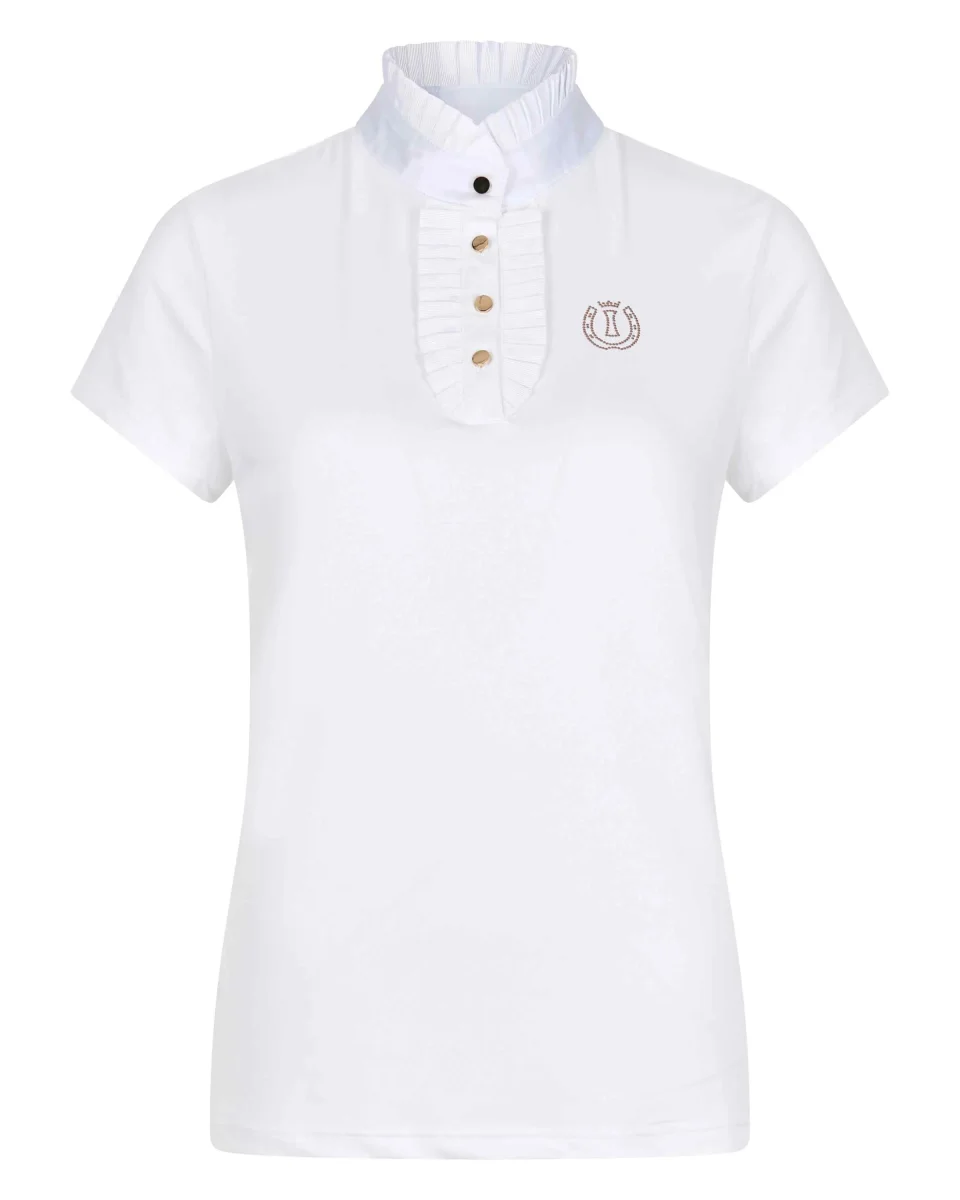 Denna snygga topp har en chic look. Kragen och knapparna ger en touch av sofistikering. Den här toppen är gjord av snabbtorkande tyg och är perfekt för att hålla sig sval och bekväm hela dagen. Vår logotyp på bröstet. Uppgradera din stil med vår Top Triumph idag!