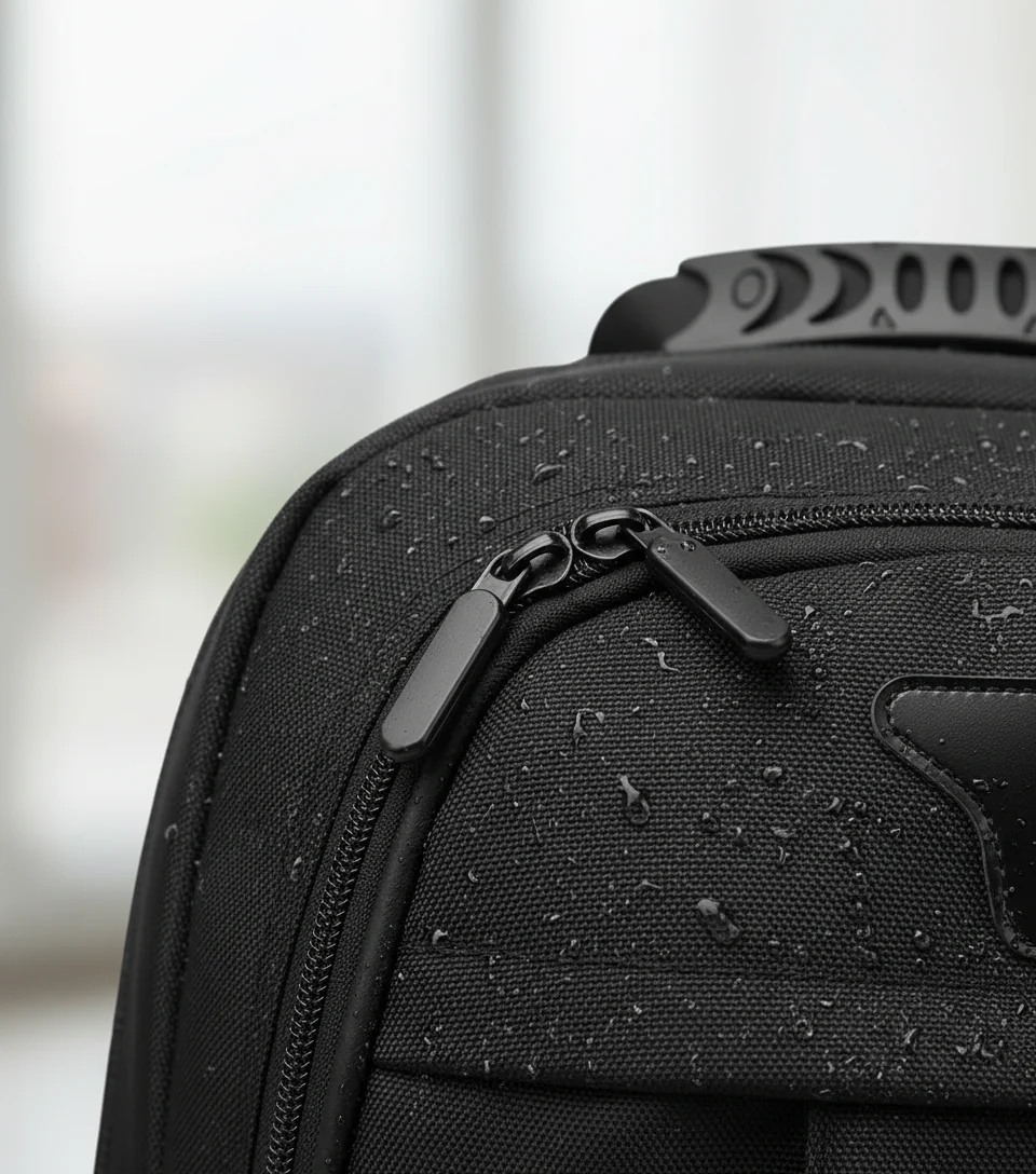 Tillverkad av vattentålig PUC, skyddar denna ryggsäck innehållet mot regn. Förstärkta sömmar ökar hållbarheten och livslängden.