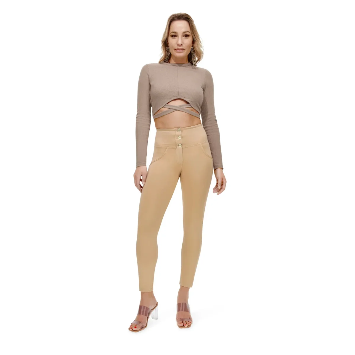 WR.UP® Pants i Beige: designade för att smickra och följa dina rörelser. De har en modern 7/8-längd som subtilt framhäver dina anklar. Därtill kommer en smickrande hög midja som ger skönt stöd. Looken avrundas med en slank skinny-passform som smiter åt runt dina kurvor. Tillverkade med en mjuk jerseystickning med extra stretch för flexibilitet. Som en del av WR.UP®-kollektionen har de patenterad teknologi designad för att naturligt framhäva och forma din silhuett. Perfekta för otaliga tillfällen, från avslappnat till uppklätt.