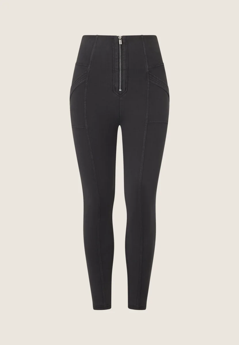 Organic cotton WR.UP® trousers with pigment dyed treatment for a unique, worn-in effect. The zipped high waist and super-skinny 7/8 fit to the ankle ensure a sophisticated and original look. The decorative stitching in the centre of the legs slims the figure, while the patented WR.UP technology naturally emphasises your shape. Decorative enamel tab detail on the left back pocket.